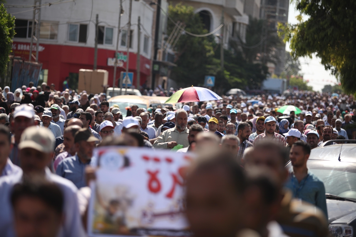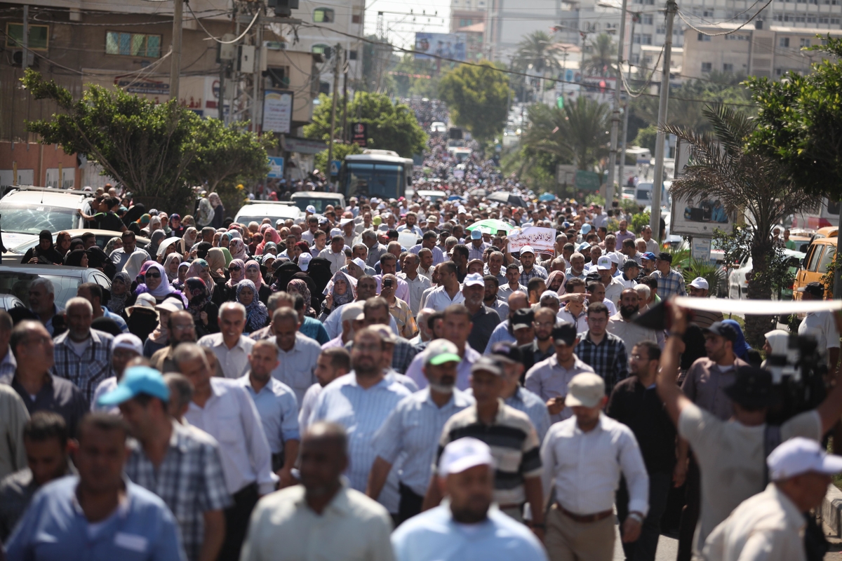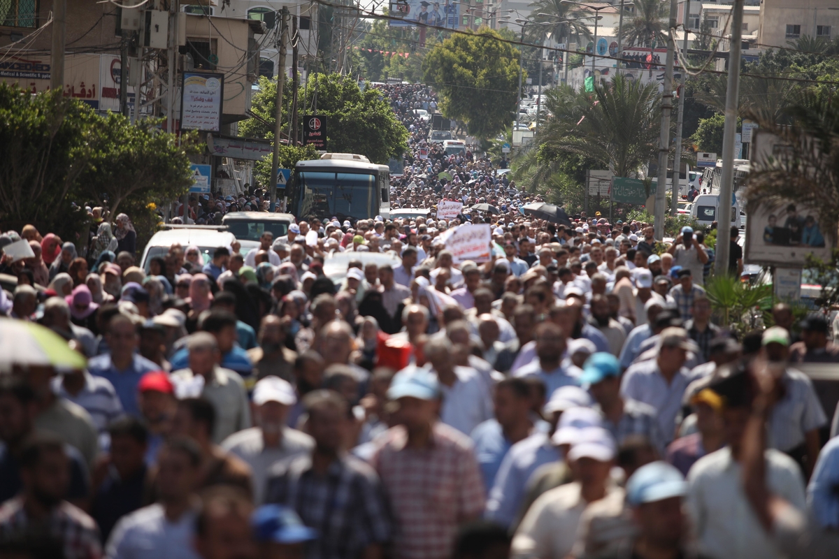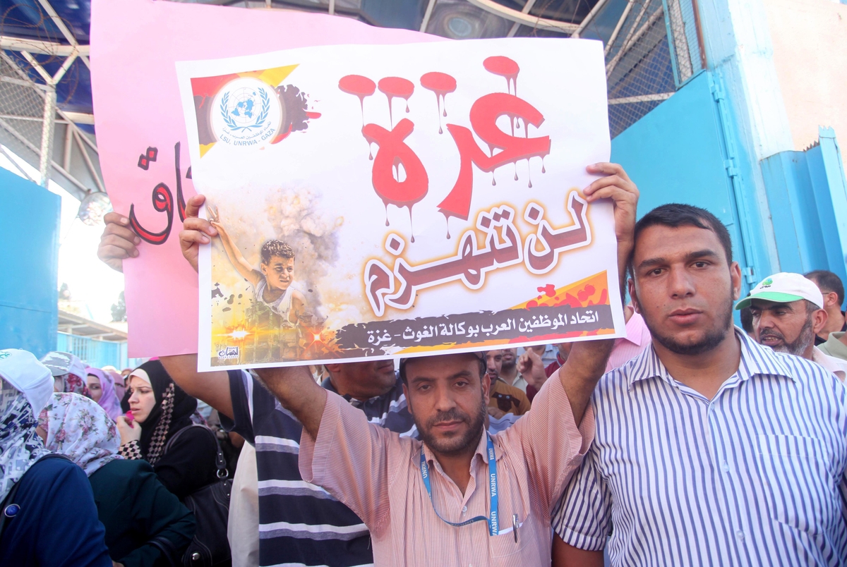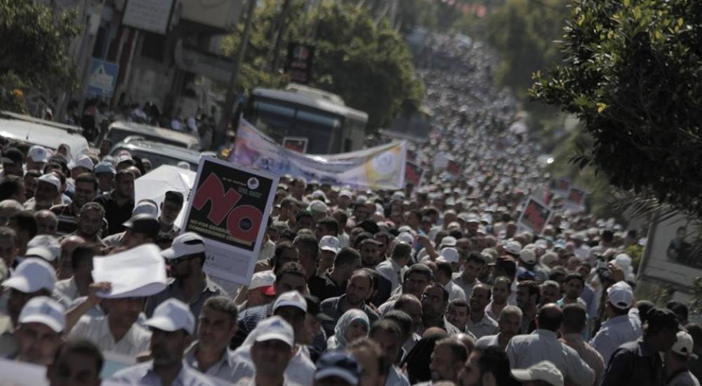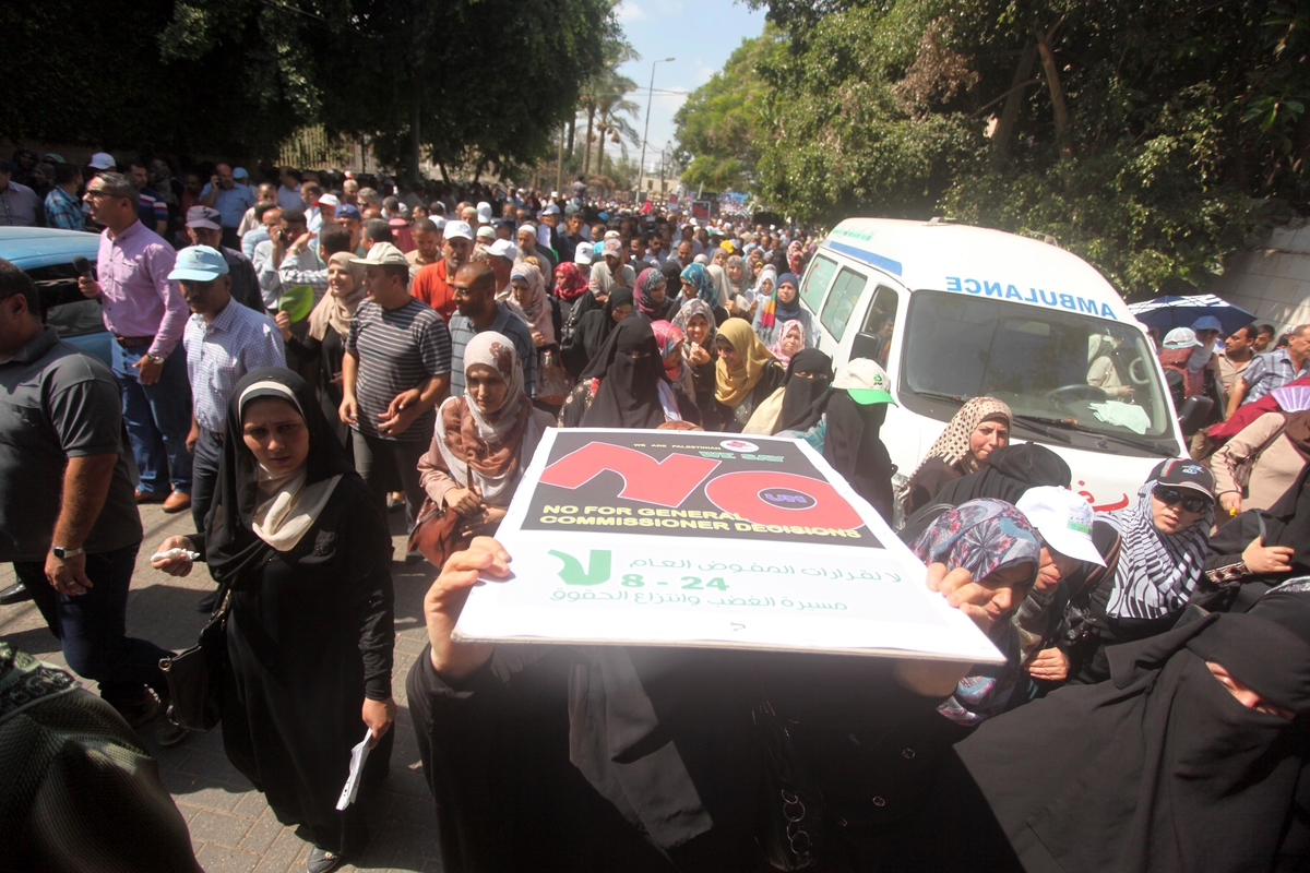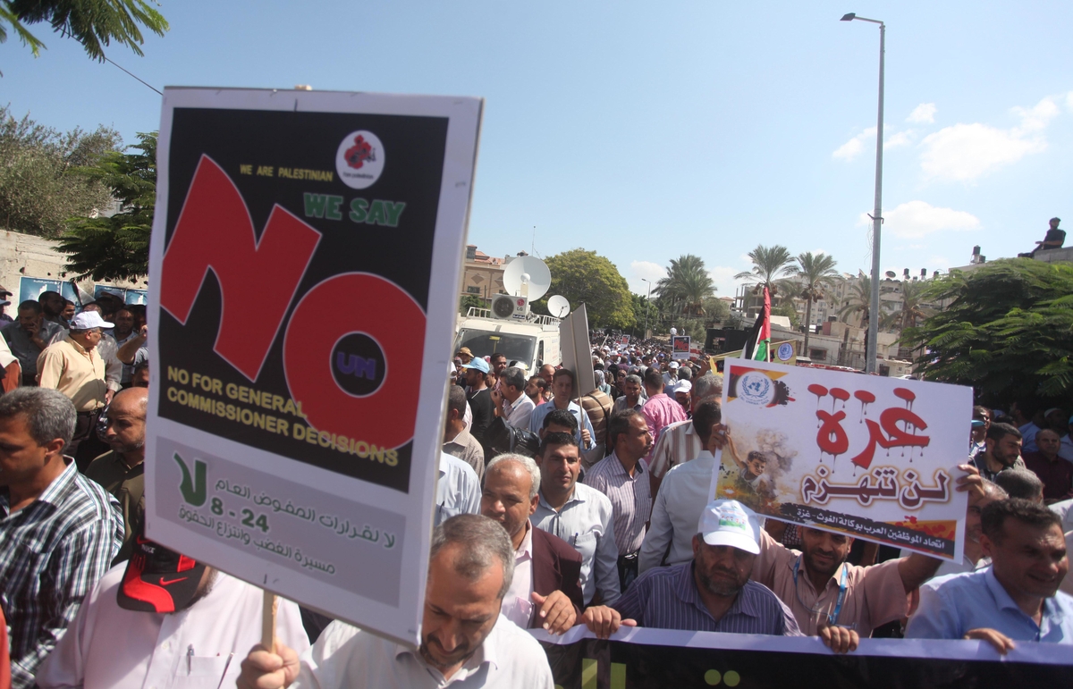 وشارك في المسيرة الحاشدة 13 ألف موظف انطلقوا من مقر الأونروا الرئيس بغزة صوب مقر الأمم المتحدة غرب المدينة، حاملين شعارات غاضبة تطالب بالتراجع عن القرارات التي تمس اللاجئين.