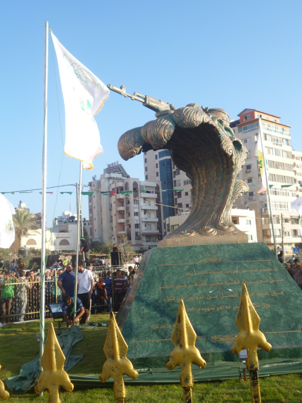 أزالت كتائب الشهيد عز الدين القسام الذراع العسكري لحركة حماس الأربعاء الستار عن نصب تذكاري في ميناء غزة، تخليداً لشهداء وحدة الضفادع البشرية، الأمر الذي لاقى احتفاءً كبيراً من الجماهير المتواجدة.