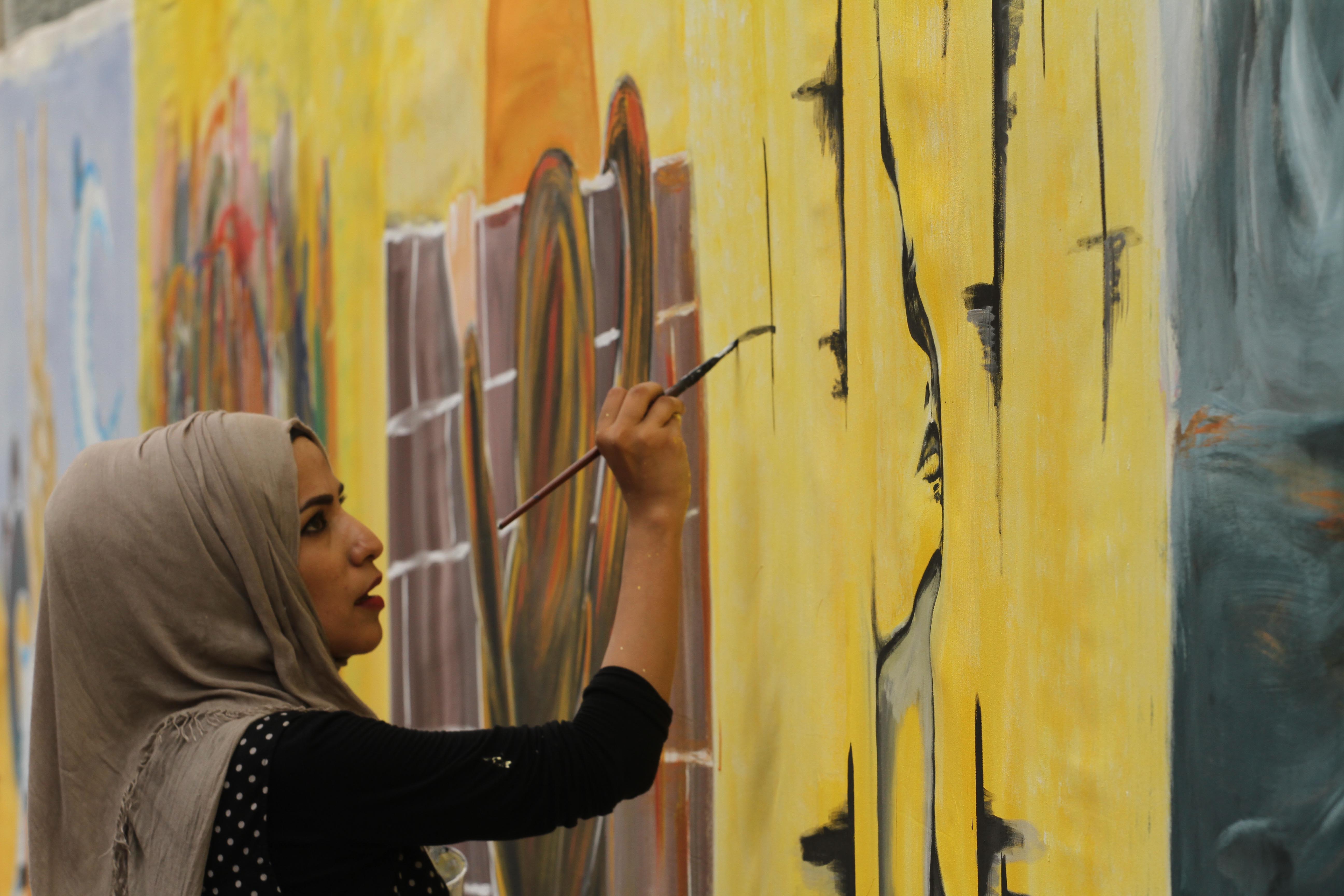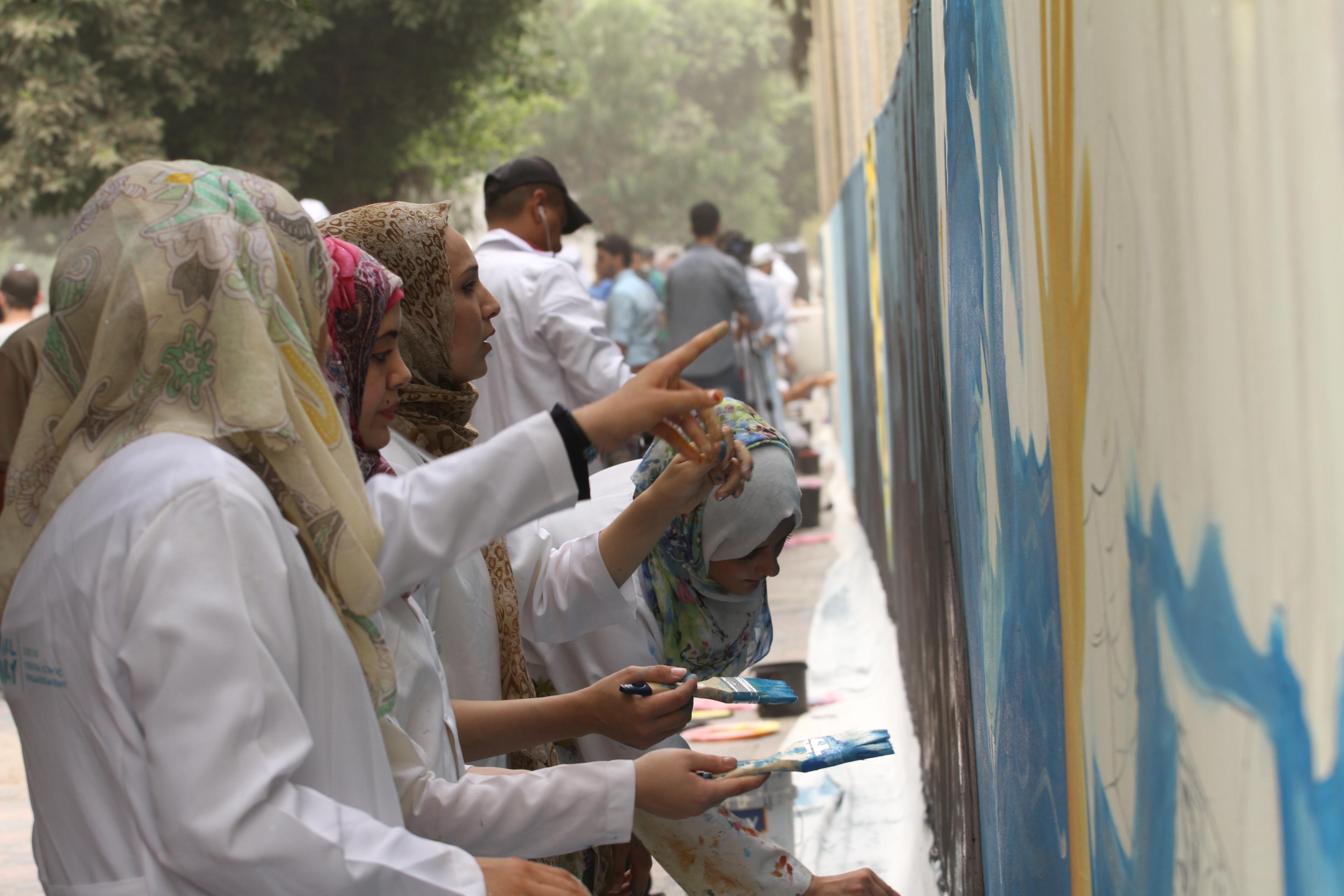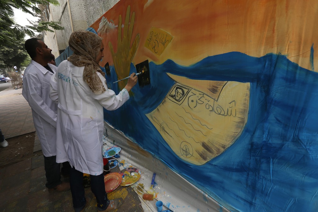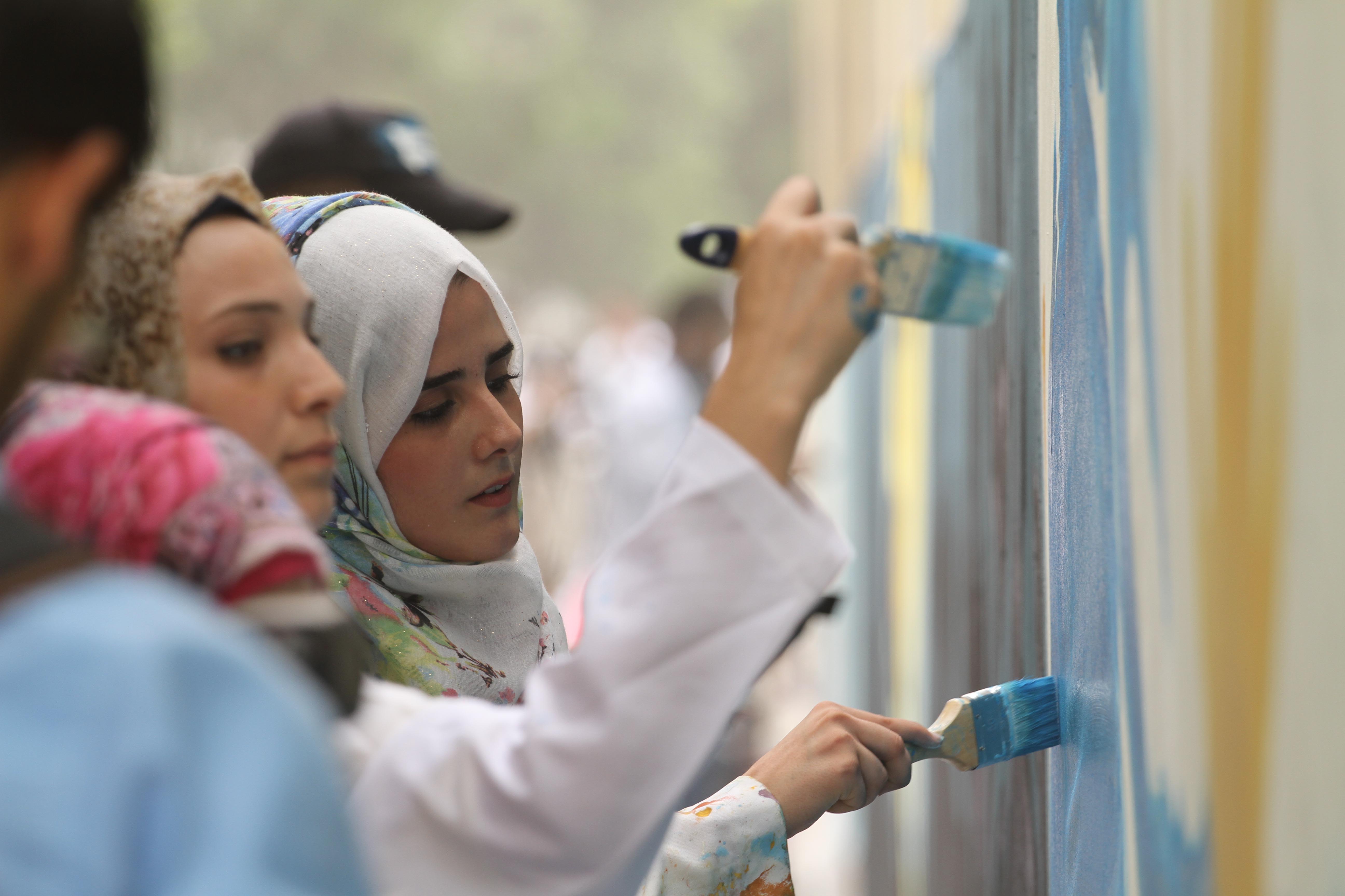 50 فناناً بغزة يدشنون أطول جدارية في فلسطين