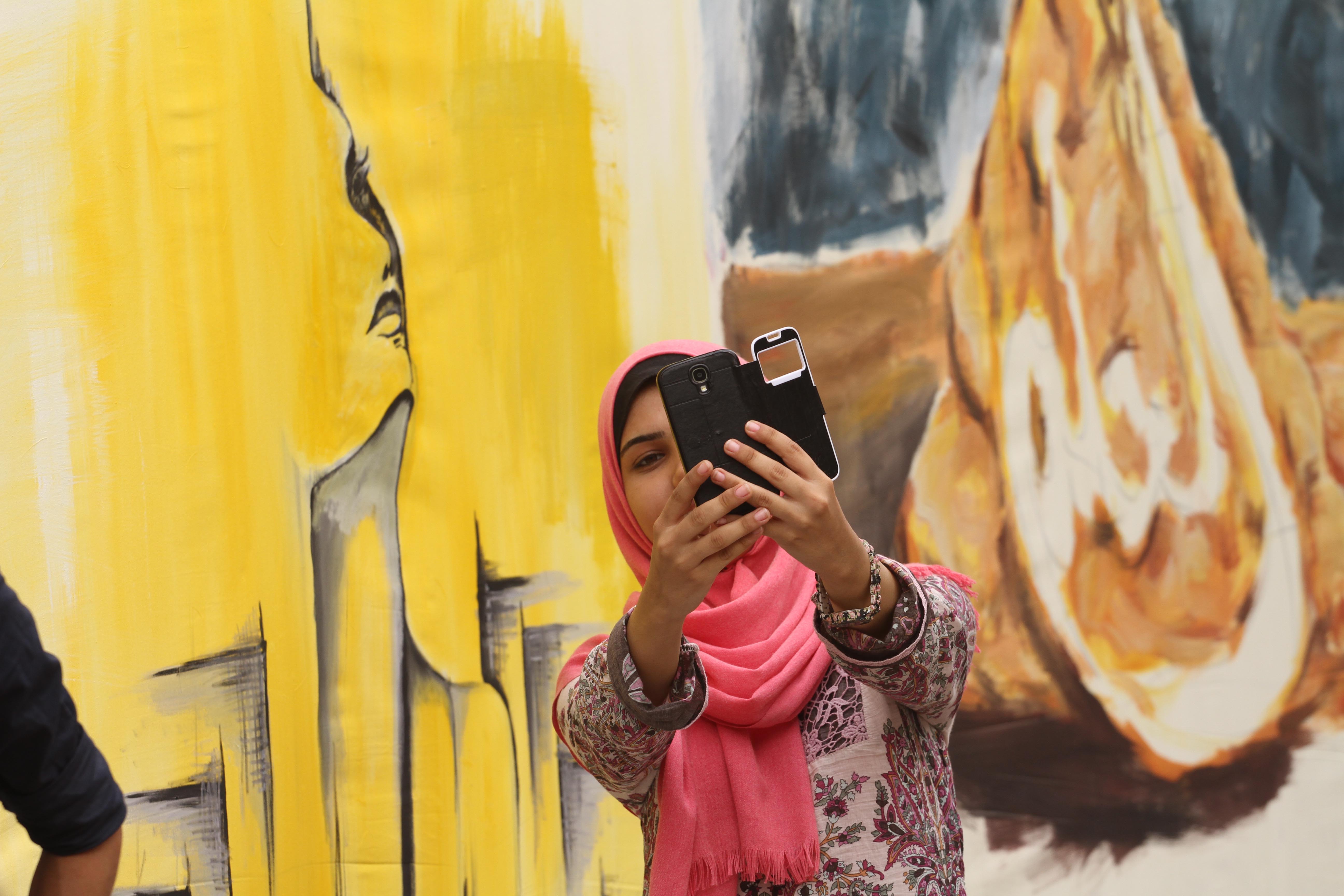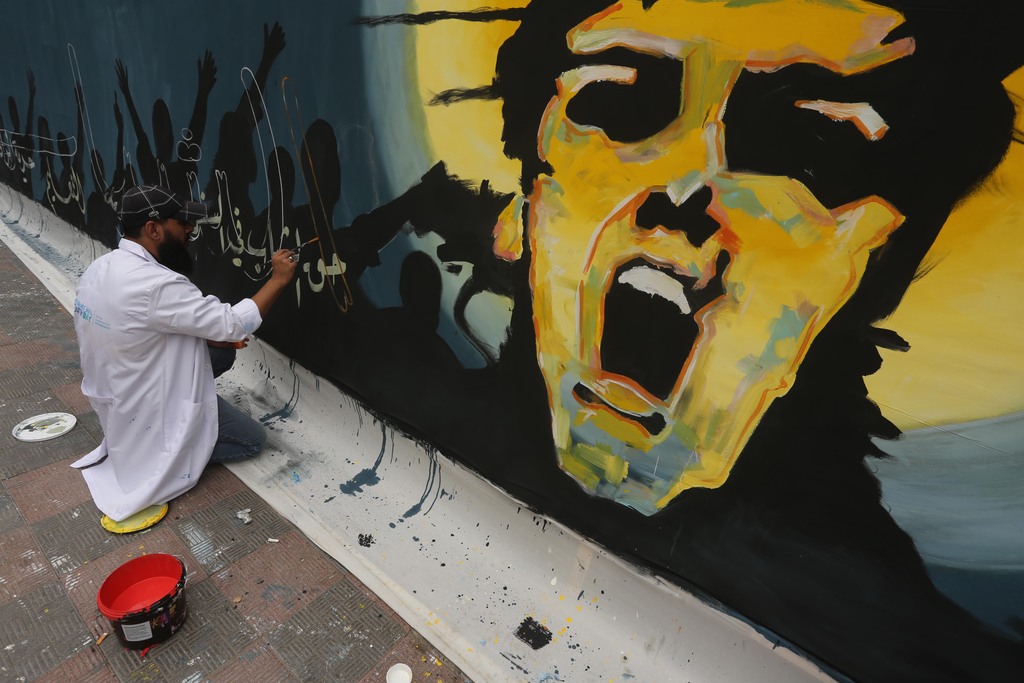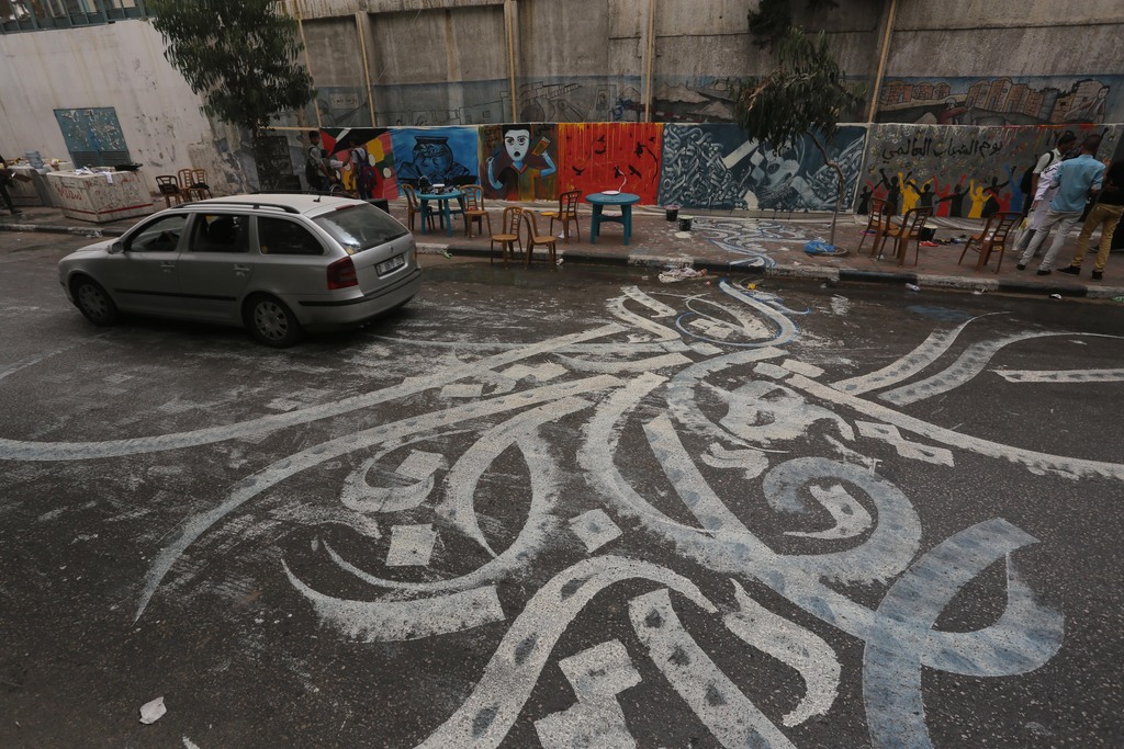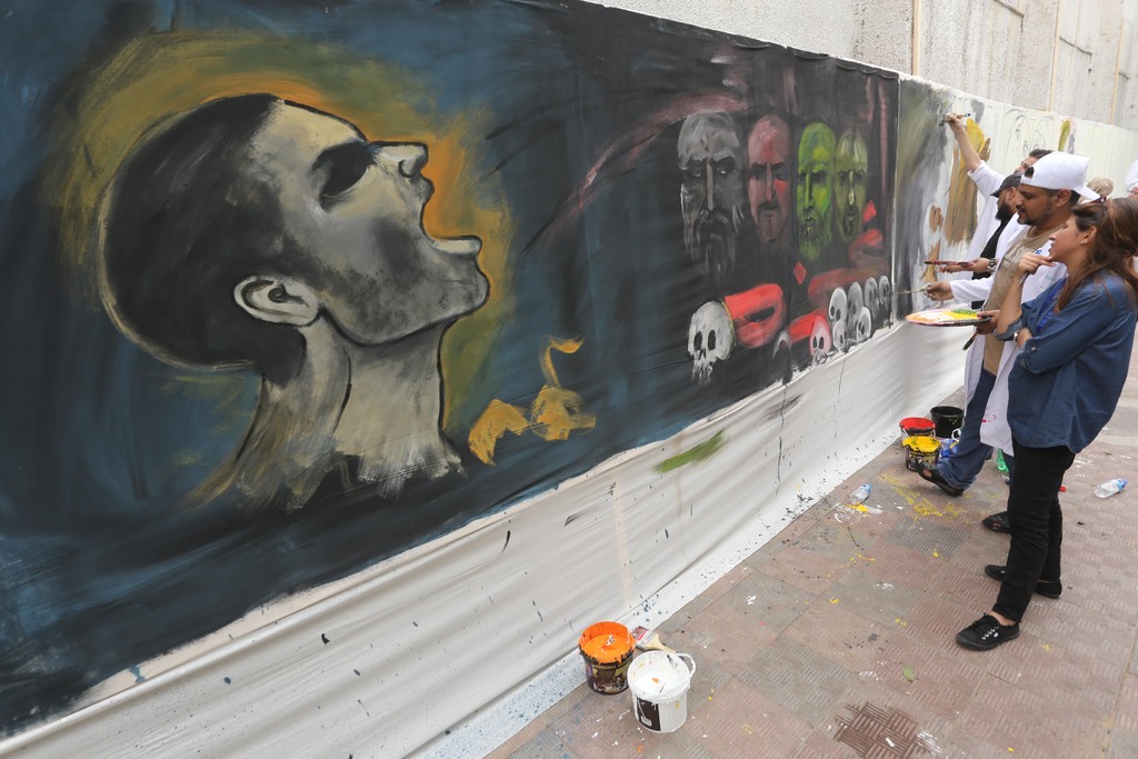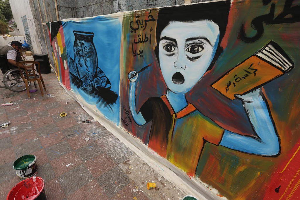 50 فناناً بغزة يدشنون أطول جدارية في فلسطين