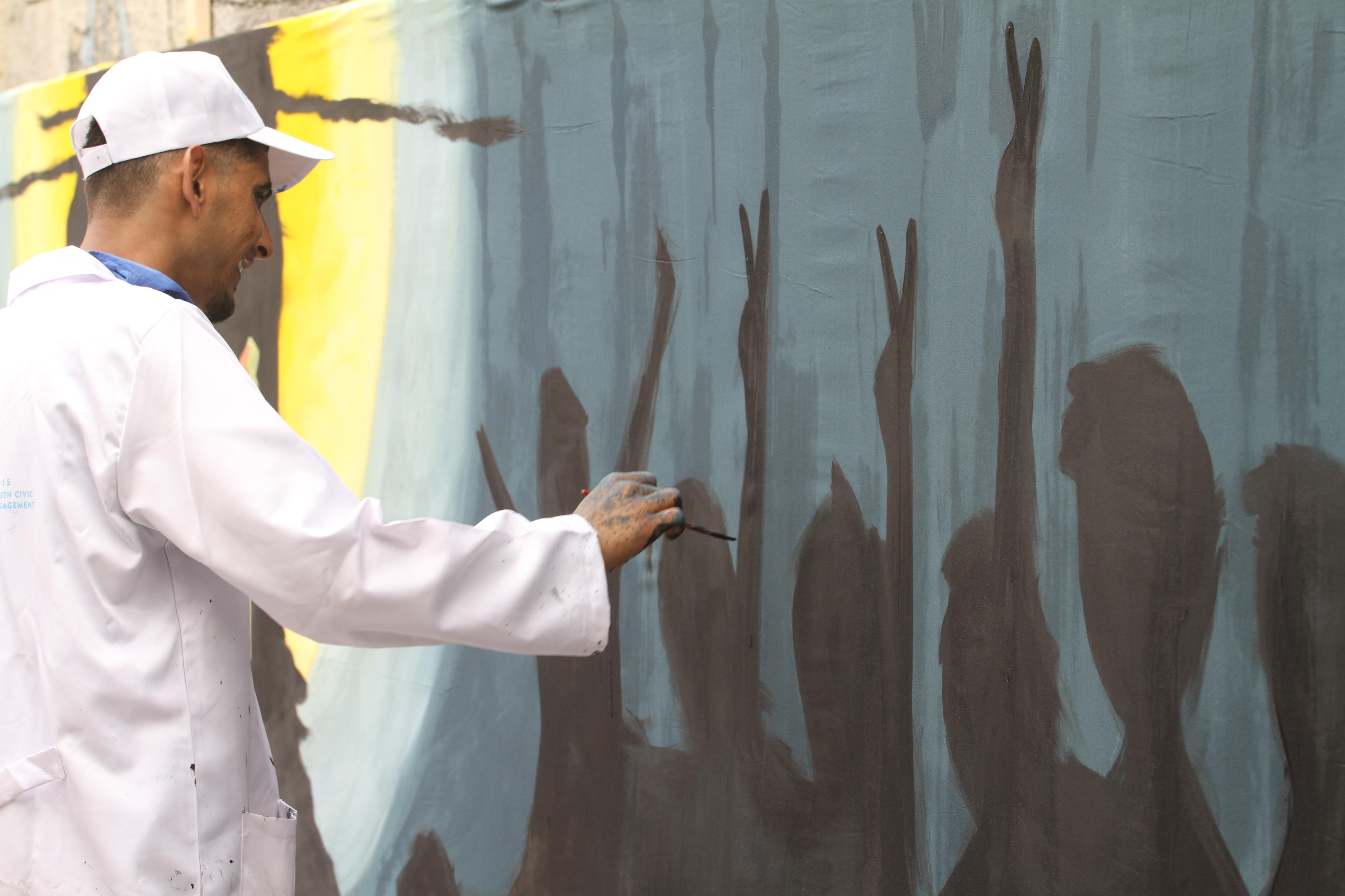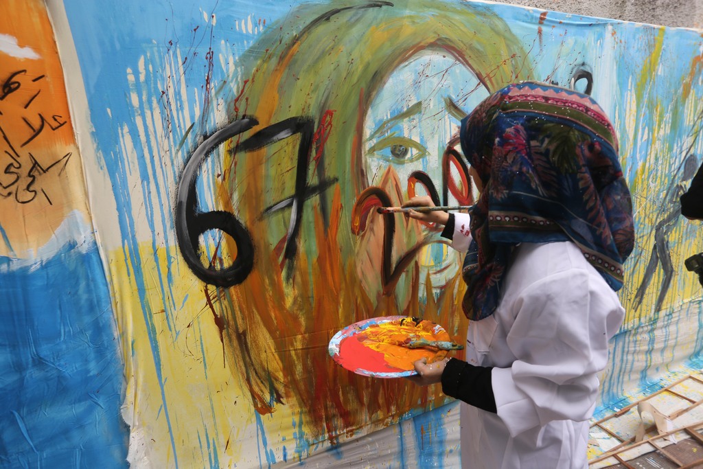 ويقول مشرف اللوحة الفنان التشكيلي محمد الكرنز (35 عامًا) لـ"صفا": "نحن الشباب شاركنا في إعداد هذه اللوحة للتعبير عن آمالنا وطموحاتنا من خلال حق الشباب في الحياة والوظيفة ومطالب الحياة بشكل عام".