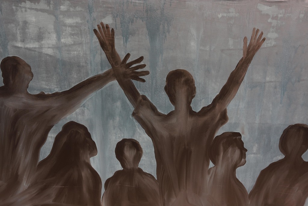 ويضيف "لوحتنا اليوم تضم تظاهرة شبابية رافعة الأيادي تعبر عن صرختهم مطالبين بالصوت العالي وسط واقع مرير يريدون حياة كريمة؛ كي لا يضطروا للهجرة خارج الوطن".