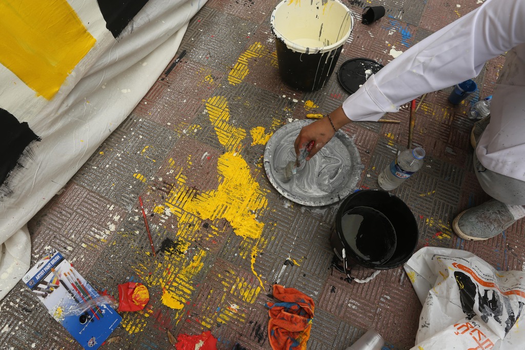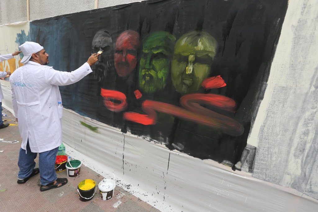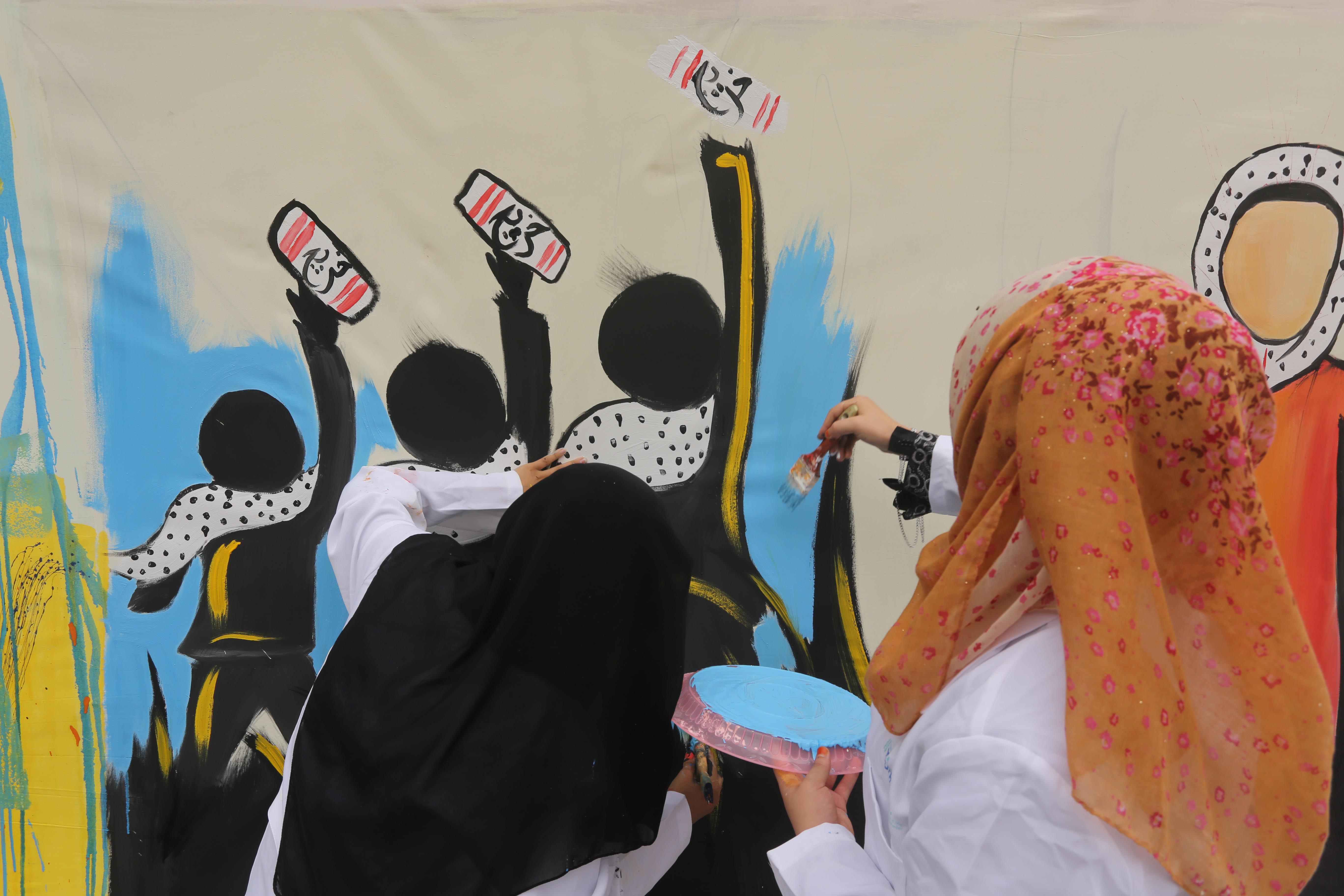 ويشارك في رسم هذه الجدارية 50 فناناً من مختلف محافظات قطاع غزة وتبلغ أعمارهم من 18-35 عامًا.