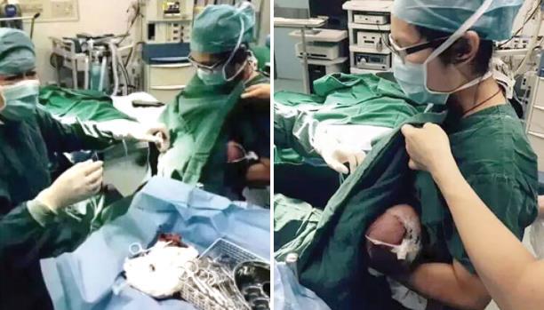 ممرضة ترضع طفلاً خلال عملية جراحية
