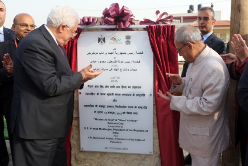 وقبل ذلك كان عباس استقبل في 12 من هذا الشهر الرئيس الهندي براناب موكيرجي وأجرا معه جولة في مدينة رام الله جرى خلالها افتتاح ميدان الهند وشارع الهند في حي السفارات في بيتونيا، وذلك غير بعيد عن مناطق المواجهات اليومية بين الشبان وقوات الاحتلال.