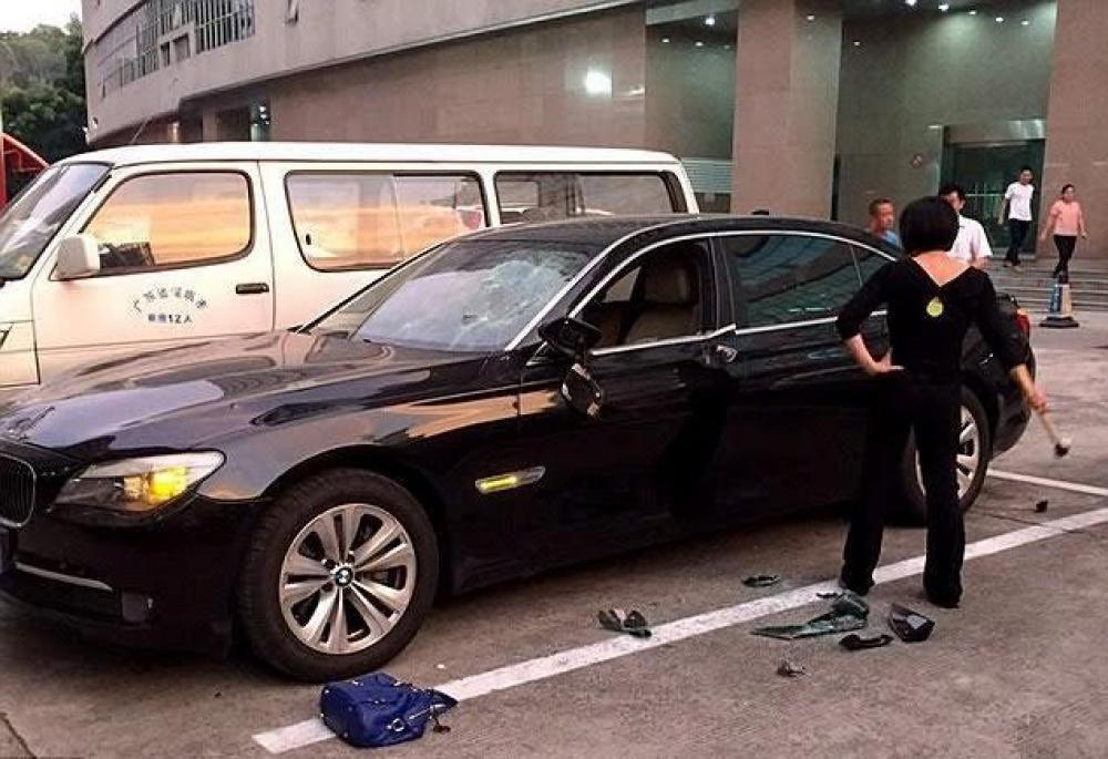 وقد سجل بعض المارة المشهد الذي وقع في إقليم "شينزن" جنوبيّ الصين، حيث شاهدوا الزوجة الغاضبة وهي تمسك بمطرقة ثقيلة، وأخذت تحطم في زجاج السيارة حتى أحدثت بها تلفيات كبيرة، ثم أخذت تحطم في أبواب السيارة وباقي أجزاءها, لمدة 20 دقيقة.