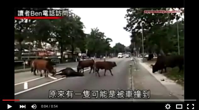 أثار قطيع من الثيران دهشة سكان مدينة هونغ كونغ بعد أن رفضوا ترك ثور أسود تعرض إلى حادث خطير أودى بحياته وحاولوا مساعدته.
