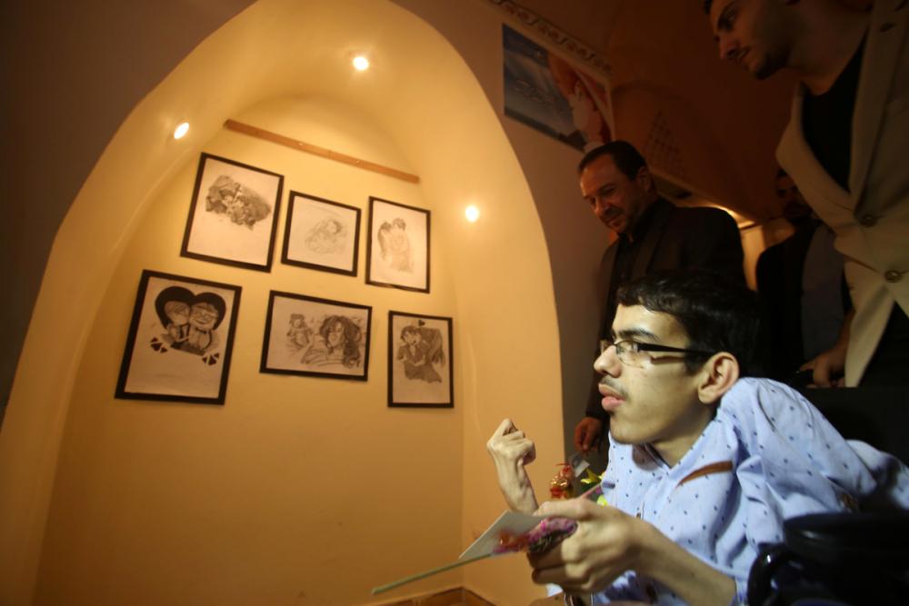 وأكد أن الفنان الدلو هو نموذج للمبدع الفلسطيني الذي حطم اليأس، وأنجز أكثر من 500 لوحة تعبر عما بداخله رغم التحديات الذي يواجهها من إعاقة جسد وظروف مادية صعبة.