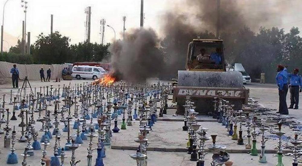 أقدمت هيئة الدفاع السكني في باكستان على إحراق 8 آلاف أرجيلة (نارجيلة) في إحدى الساحات العامة في عملية تحمل إسم "إعدام 8000 أرجيلة في باكستان".