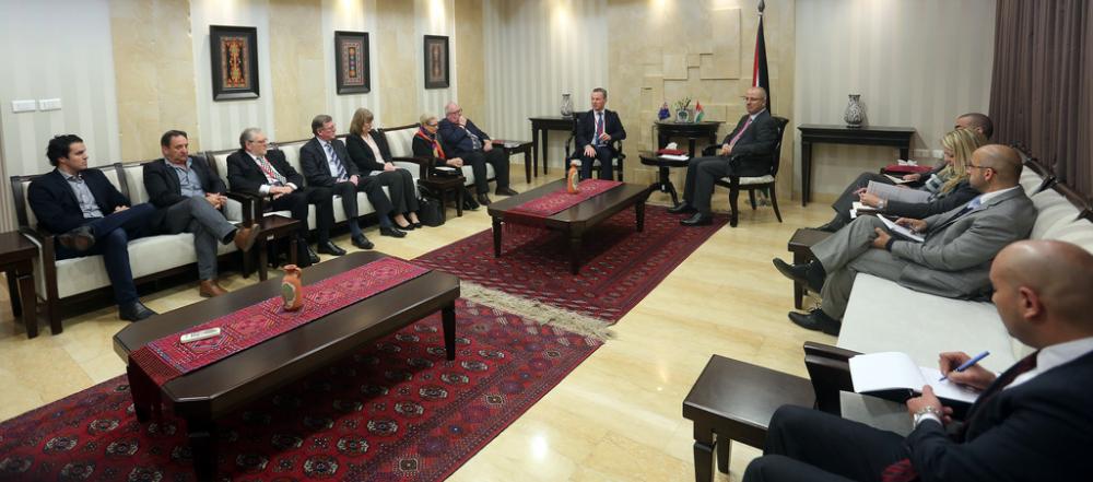 وقدم الحمد الله الشكر لأستراليا على دعمها للعديد من القطاعات الحيوية، خاصة التعليم والصناعة والمياه في الضفة الغربية وقطاع غزة.