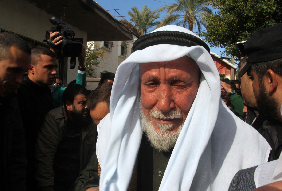 أما محمد الأغا (65 عامًا) والد الشهيد، والذي يكسوا الشيب لحيته وشعره، فكان يبدو متماسكًا أكثر من غيره، لكن دموعه التي ذرفت لحظة وداع نجله، كشفت عن حرقة كبيرة في قلبه.
