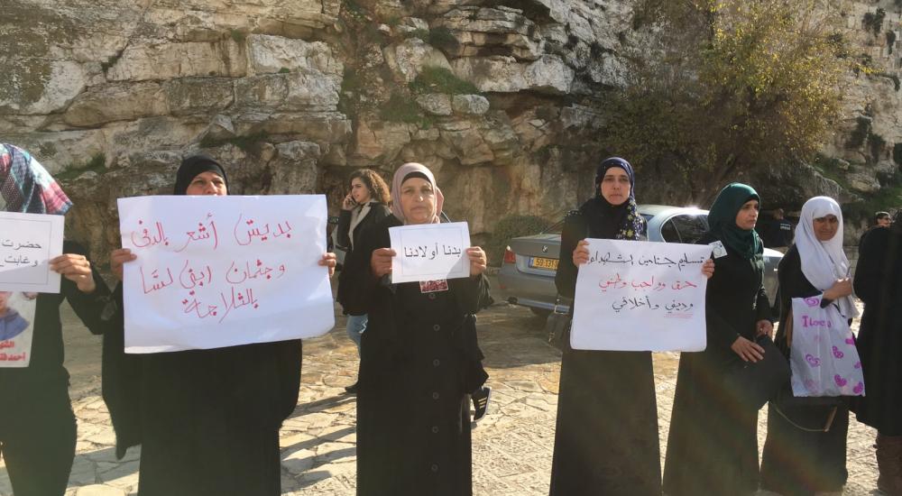 وحملوا يافطات بأسماء الشهداء المحتجزين، وشعارات مختلفة طالبت بضرورة استعادة الجثامين، إضافة إلى رفع الأعلام الفلسطينية.