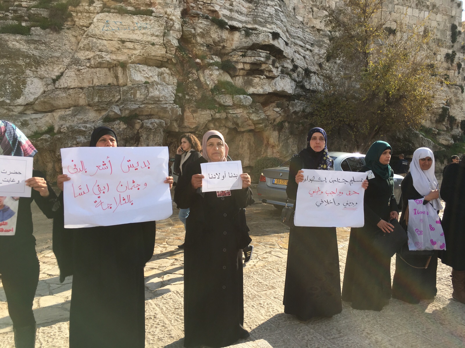 وبدأت السلسلة التي جاءت تحت شعار "استعادة الجثامين حق وكرامة"، وبمشاركة مئات المقدسيين، من باب الساهرة- أحد أبواب القدس القديمة- مرورًا بشارع السلطان سليمان ومنطقة باب العامود.