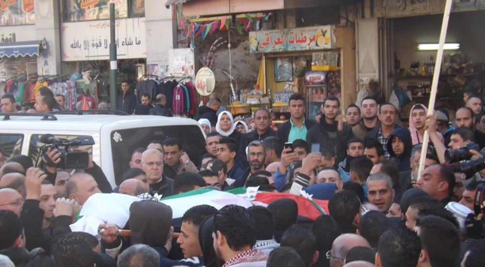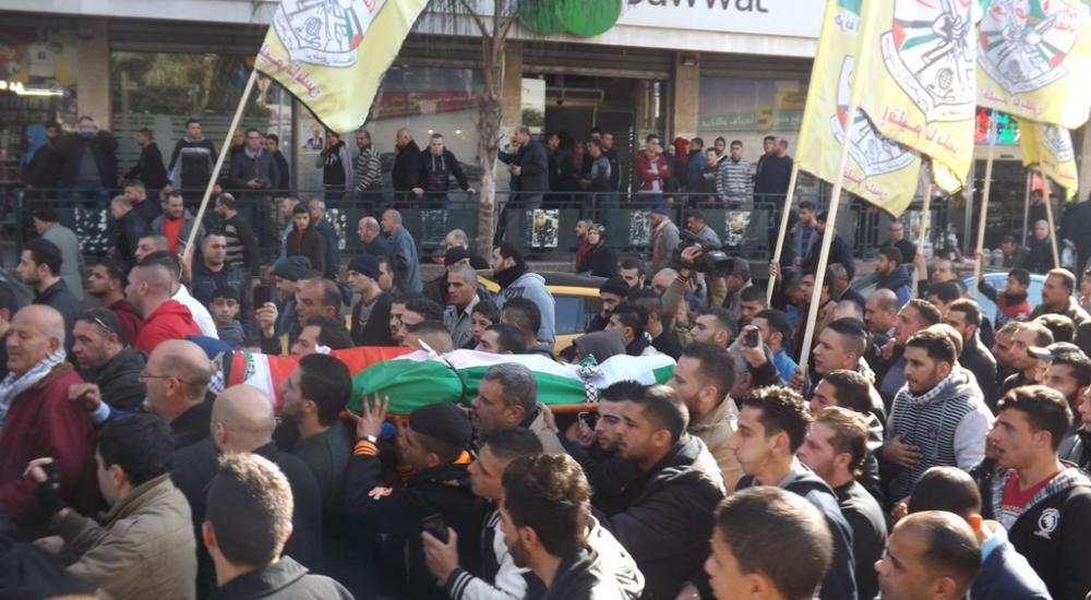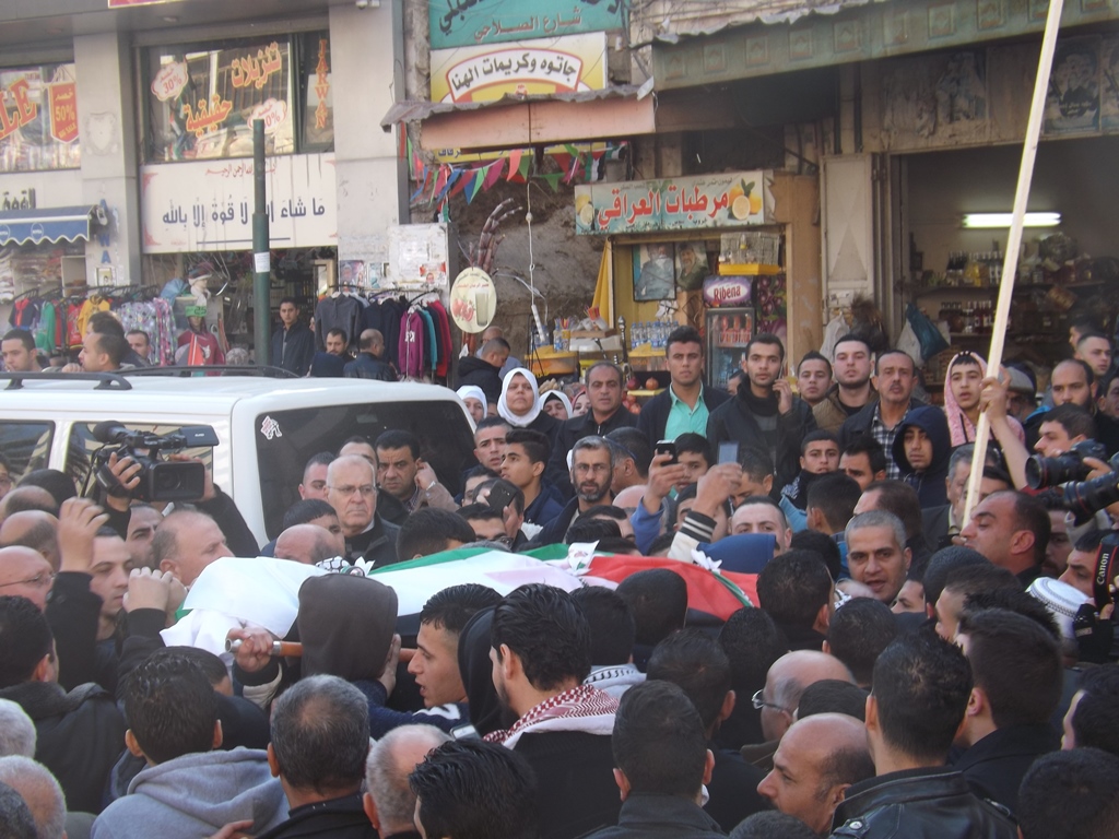 ونقل جثمان الشهيد بسيارة إسعاف من معهد الطب الشرعي في جامعة النجاح بمشاركة عشرات المركبات إلى ميدان الشهداء، حيث أدى المشيعون الصلاة عليه.