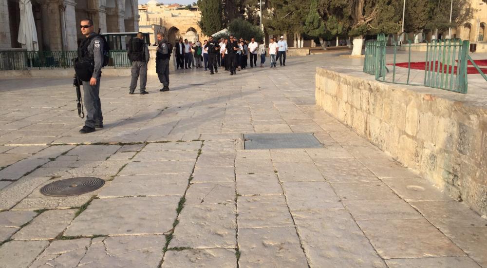 وبالنسبة للمسجد الأقصى المبارك، فقد واصل الاحتلال تصعيده في المسجد خلال العام 2015، بتنفيذ اعتداءات مشتركة عليه من قبل جهات حكومية وقيادات يمينية متطرفة وجماعات "الهيكل المزعوم" بدعم وتشجيع من شرطة الاحتلال.