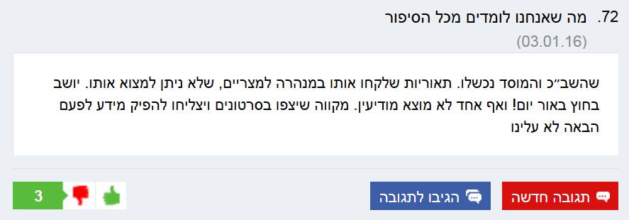 ورأى بعض المعلقين ومن بينهم الملقب "افيتال" بتعليقه على الخبر على صفحة "يديعوت احرونوت" أن التسجيل يعد صفعة قوية لأجهزة الاستخبارات الإسرائيلية التي لم تتمكن من الوصول لشاليط على مدار 5 سنوات من احتجازه بالقطاع على الرغم من قضائه وقتاً في الشواء خارج البيت.