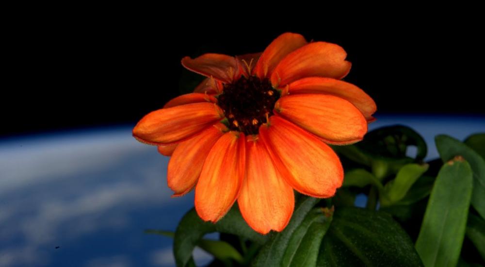 قال رائد الفضاء الاميركي سكوت كيلي "إن نبتة زينيا زرعت في محطة الفضاء الدولية أزهرت، مخلفة أول زهرة ترى النور في الفضاء.