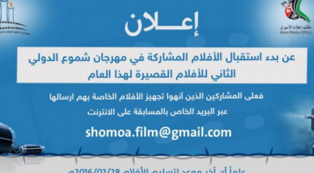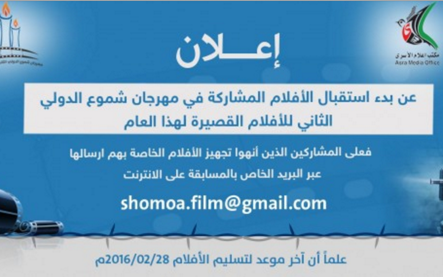 أعلنت اللجنة التحضيرية لمهرجان شموع الدولي الثاني للأفلام القصيرة والمنبثقة عن مكتب إعلام الأسرى عن بدء استلامها للأفلام المشاركة في المهرجان.