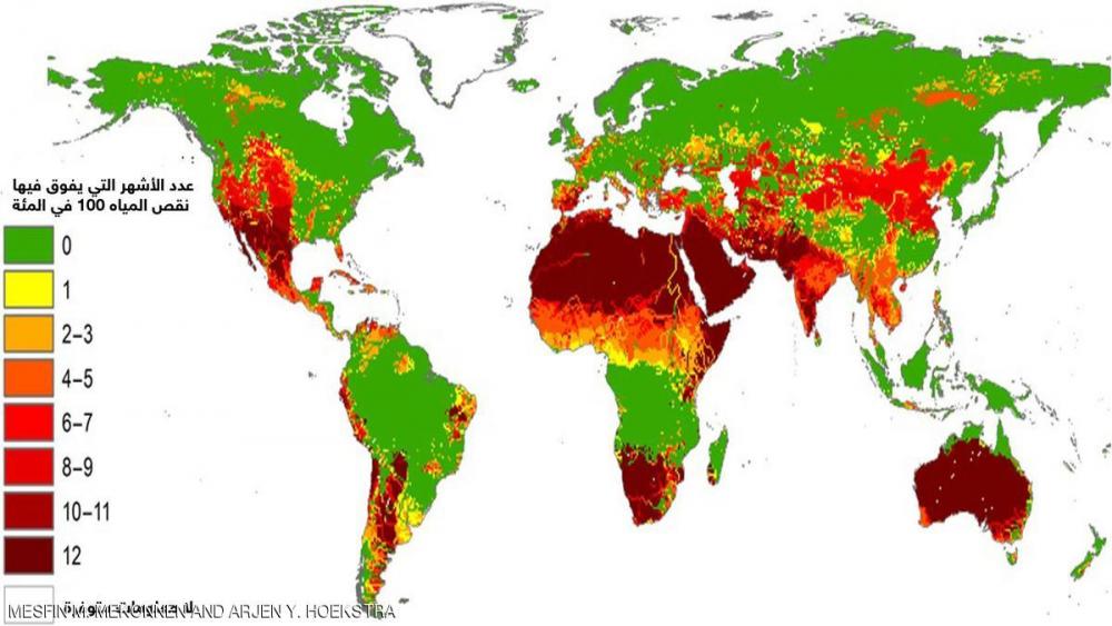 حذرت دراسة من أن نحو 4 بلايين إنسان، أي نحو ثلثي سكان العالم يواجهون نقصاً حاداً في المياه خلال شهر واحد من أشهر السنة على الأقل، مصنفة