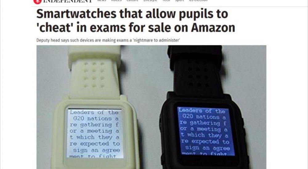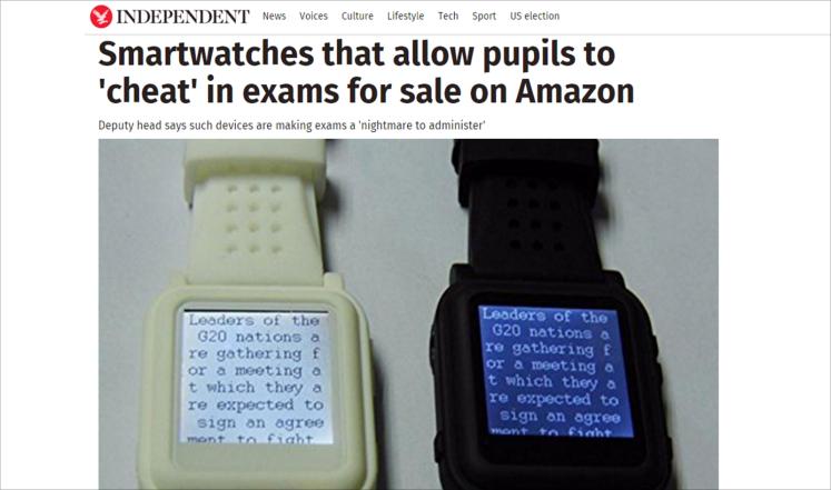 يعرض موقع أمازون التجاري عبر الإنترنت "ساعات ذكية" تسمح للطلبة بالغش في الامتحانات. وتبلغ سعة الذاكرة فيها 4 غيغابايت وتباع بنحو 64 دولارا.