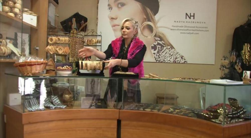 ففكرت وخطر ببالها أن خشب الزيتون شيء تقليدي جدًا في منطقة سكنها بيت لحم، فعملت خلط ما بين الإكسسوارات المرصعة بخشب الزيتون والأزياء.