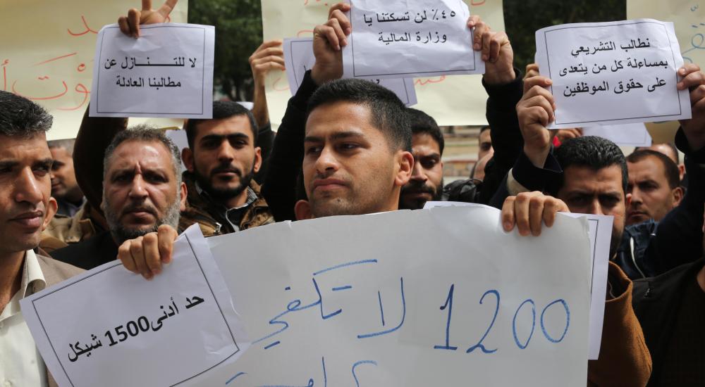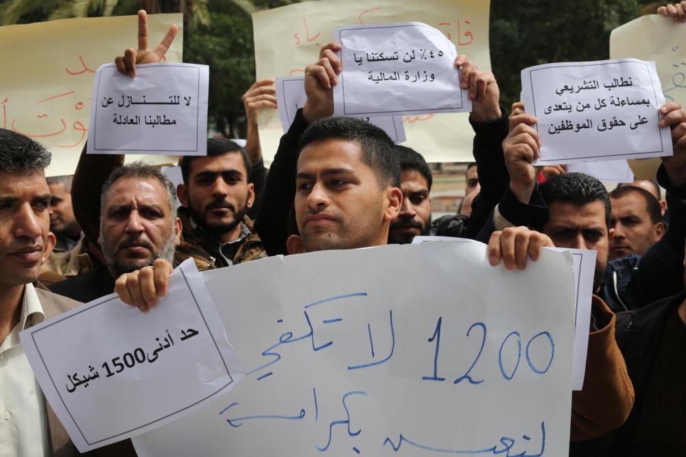 غزة: موظفون يتظاهرون أمام التشريعي للمطالبة بحقوقهم