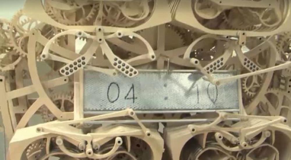 تتألف الساعة الكاتبة من 407 قطع خشبية نحتها بنفسه, ولجعل القطعة أكثر دقة اضطر إلى إعادة صنعها مرات عدة.