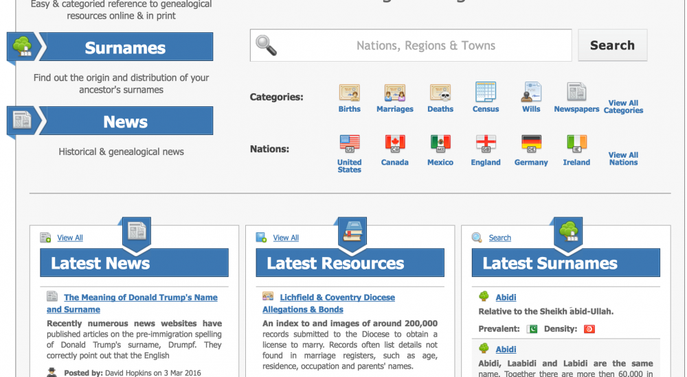 هذا ويقدم الموقع اقتراحات كتابة الاسم بطرق مختلفة حول العالم لتسهيل عملية البحث وتعميقها، كما يشمل الأنساب العربية، وتاريخ العائلات ومعاني الأسماء العائلية والأنساب.