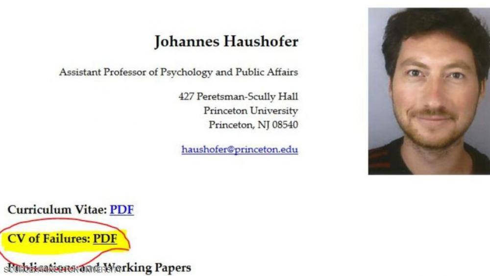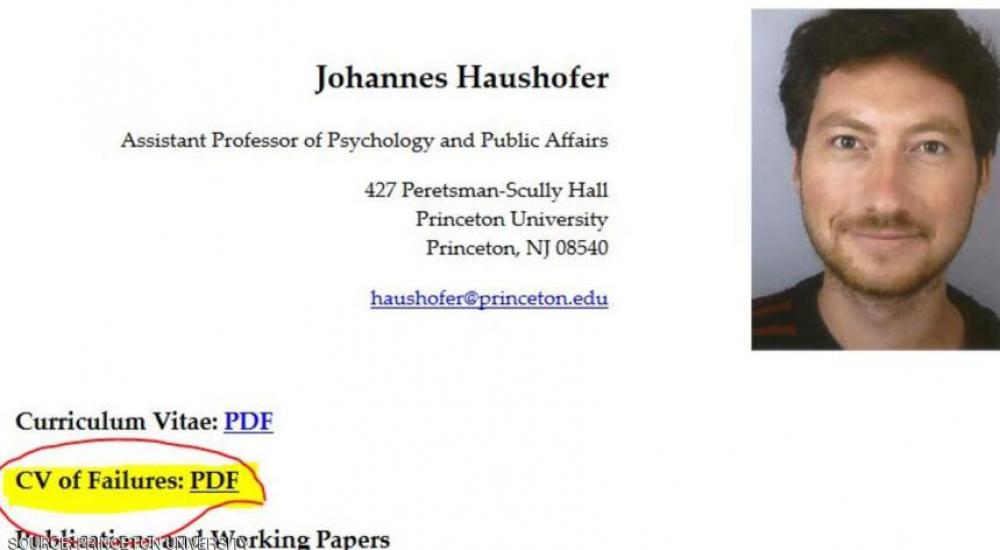 الأستاذ في جامعة برينستون يوهان هاوشوفر، قام بعمل مذهل في هذا الإطار وقام بنشر سيرة ذاتية مليئة بالفشل ونشرها على الإنترنت.