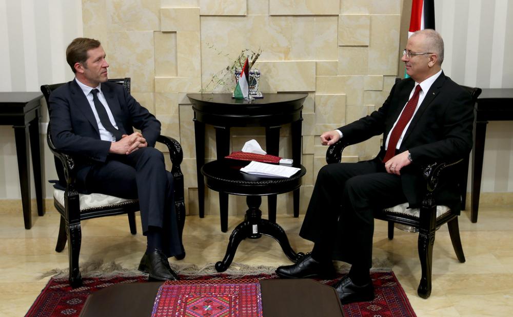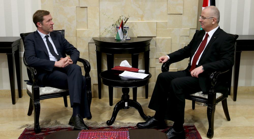 استقبل رئيس الوزراء رامي الحمد الله، اليوم الخميس في مكتبه برام الله، رئيس حكومة إقليم والونيا في بلجيكا بول ماجنيتي، بحضور القنصل البلجيكي برونو جانس، واطلعه على اخر التطورات السياسية والاقتصادية، والانتهاكات الاسرائيلية المستمرة بحق ابناء شعبنا.