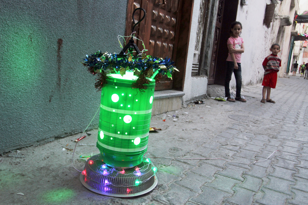 ويضيف الجرمي "قمت بتصميم مدفع رمضاني بإمكانيات بسيطة من الخردة، ودهانه بشكل جميل، ووضع إنارة بداخله، وسيُطلق كل يوم بموعد الإفطار، إلى جانب فوانيس من مُخلفات سخانات المياه، وأغطية المراوح".