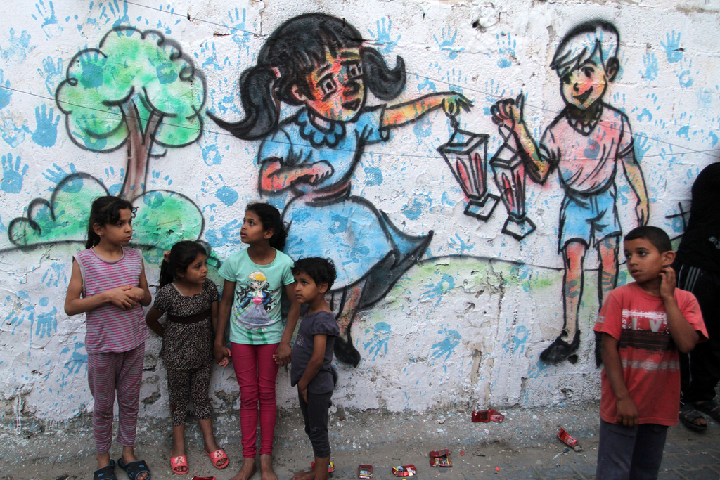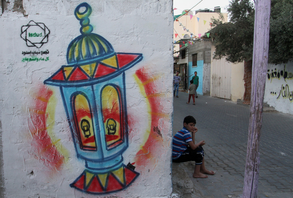 الناظر للوهلة الأولى للشارع الرئيس بمخيم "أسدود" للاجئين الفلسطينيين، في محافظة رفح جنوبي قطاع غزة، يعتقد أن الزينة الملفتة على جدرانه وأسطحه معدة لفرح أو ما شابه.
