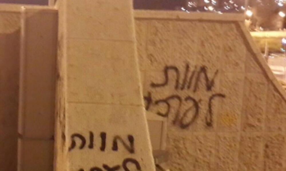 خطّ مستوطنون الأربعاء شعارات عنصرية ضد طبيب فلسطيني من سكان منطقة "كريات حاييم" الواقعة على سواحل أراضينا المحتلة عام 48.