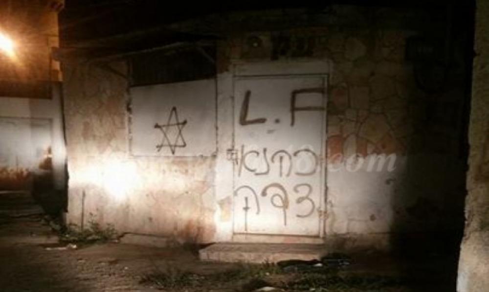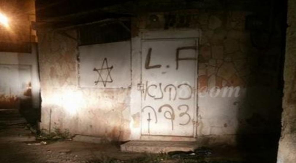خطّ مستوطنون عبارات عنصرية ضد الفلسطينيين على أحد أبواب المحلات التجارية في سوق الرملة بالداخل المحتل.