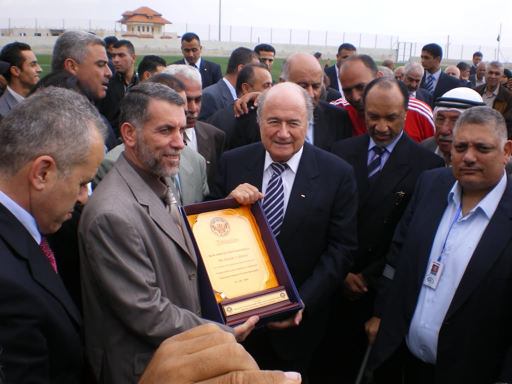 رئيس بلدية البيرة السابق جمال الطويل مع رئيس الفيفا السابق جوزيف بلاتر