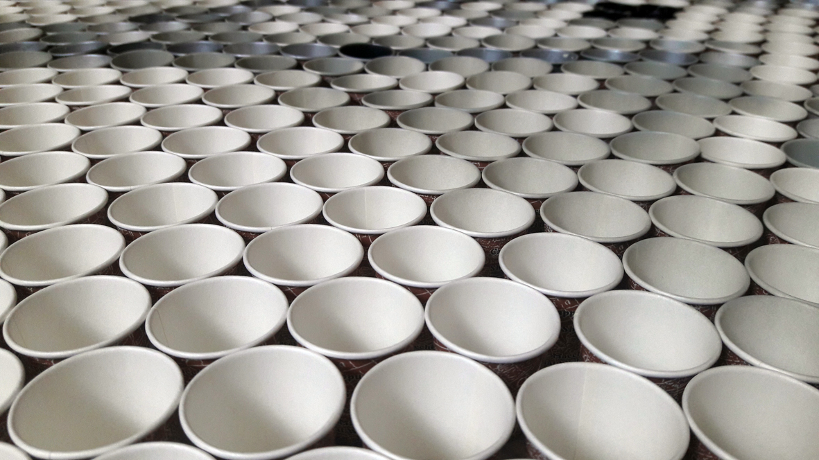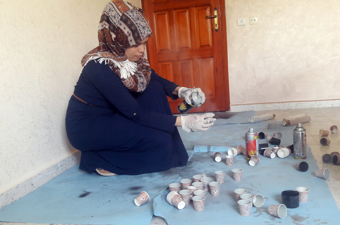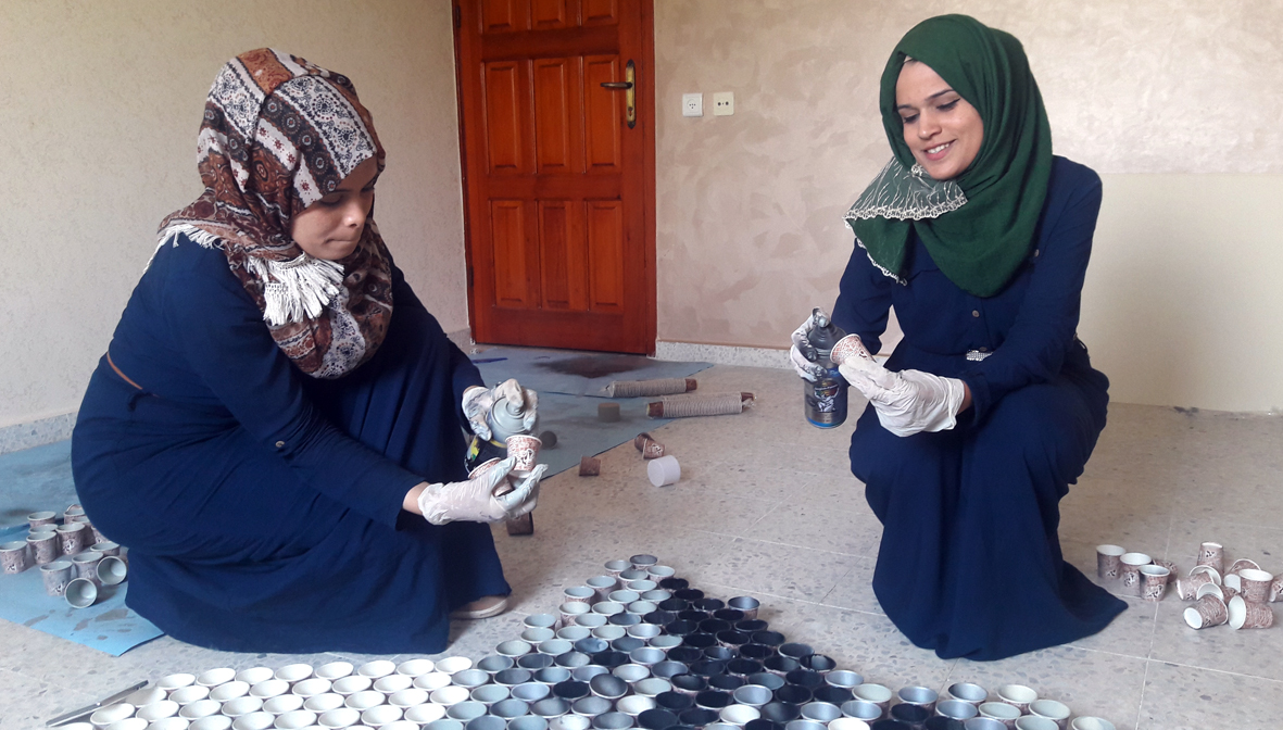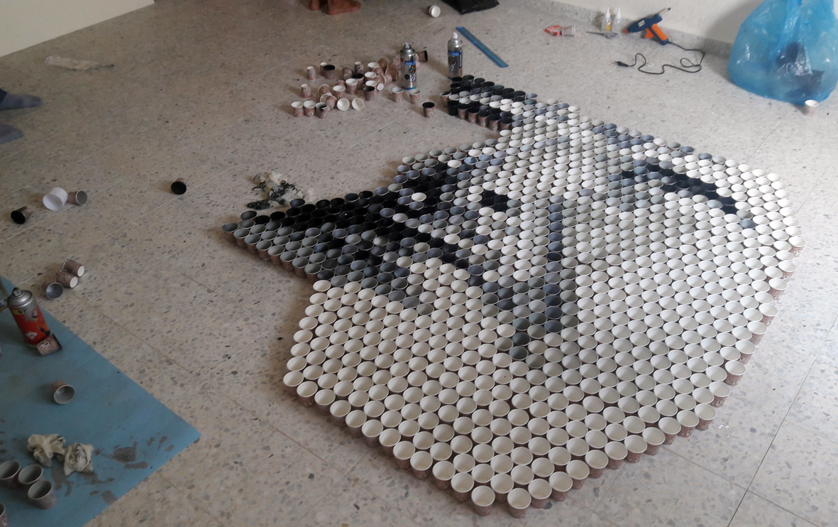 تمكنت فنانتان تشكيليتان من محافظة خان يونس جنوبي قطاع غزة، من رسم لوحة فنية كبيرة تزيد عن "3أمتار"، من الأكواب الكارتونية التي تستخدم في احتساء المشروبات الساخنة، في مبادرة تُعد الأولى من نوعها على مستوى فلسطين.