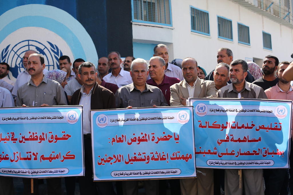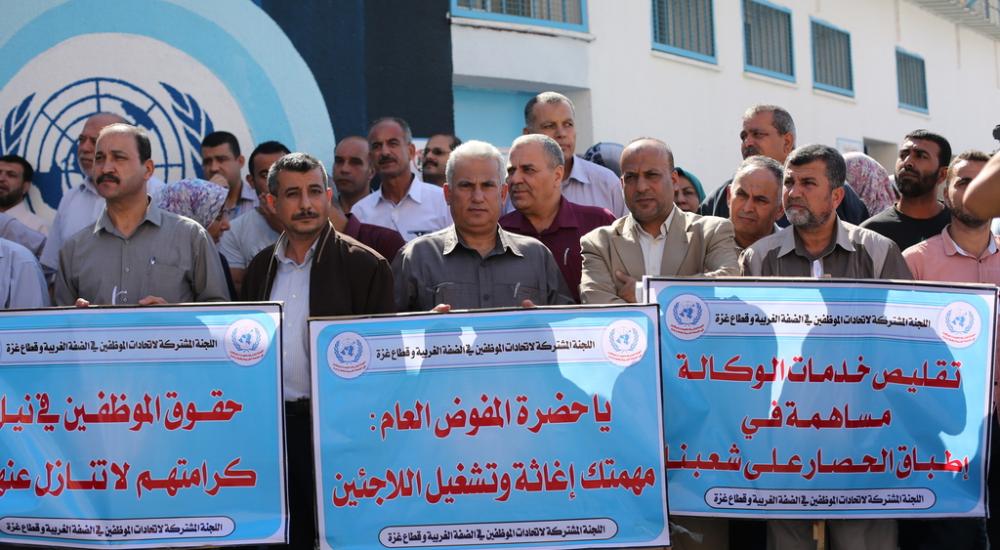 أعلنت اللجنة المشتركة لاتحادات الموظفين بوكالة غوث وتشغيل اللاجئين الفلسطينيين (أونروا) في الضفة الغربية المحتلة وقطاع غزة، يوم الثلاثاء، سلسة من الخطوات التصعيدية، بعد فشل الحوار مع إدارة الوكالة بشأن مطالب الموظفين.