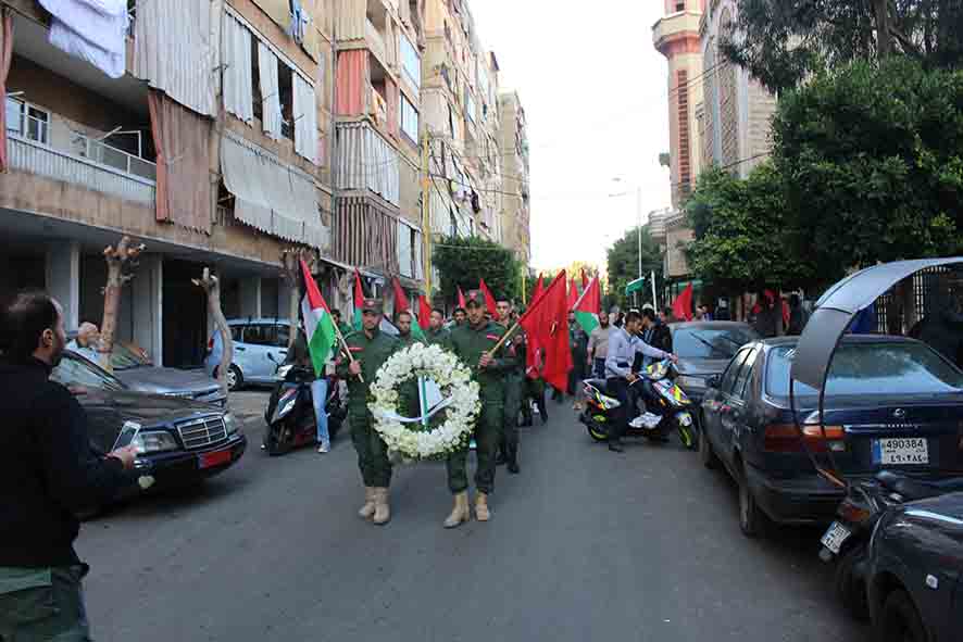 وتقدم موكب التشييع عضوي المكتب السياسي للجبهة علي فيصل وابراهيم النمر، وعدد من أعضاء اللجنة المركزية وقيادة بيروت، إضافة إلى عائلة ورفاق الشهيد وحشد من أبناء المخيم وفعالياته.