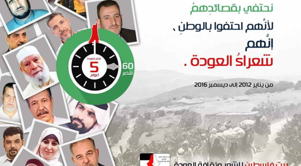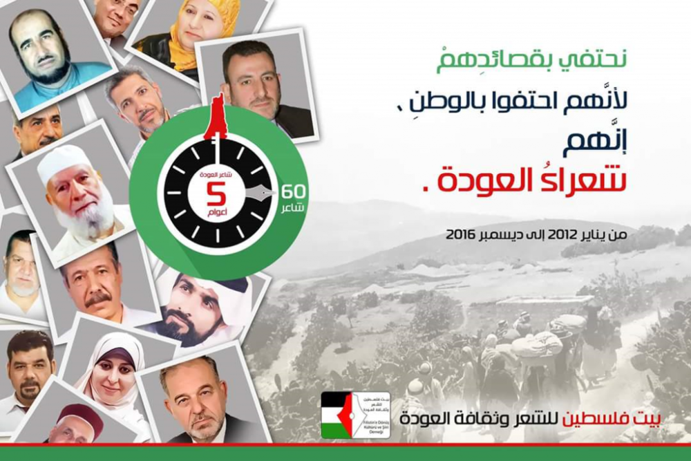وأوضح بيت فلسطين في بيان وصل "صفا" نسخة عنه إن تعزيز وتطوير مدرسة شعر العودة هي رسالة إنسانية تتمسك بحق العودة الأصيل الذي لا تفريط فيه، وقصائد شعرية تنحت في صخور الزمن المتراكم تعلن في كل عام العودة حق في صميم الإنسان الفلسطيني.