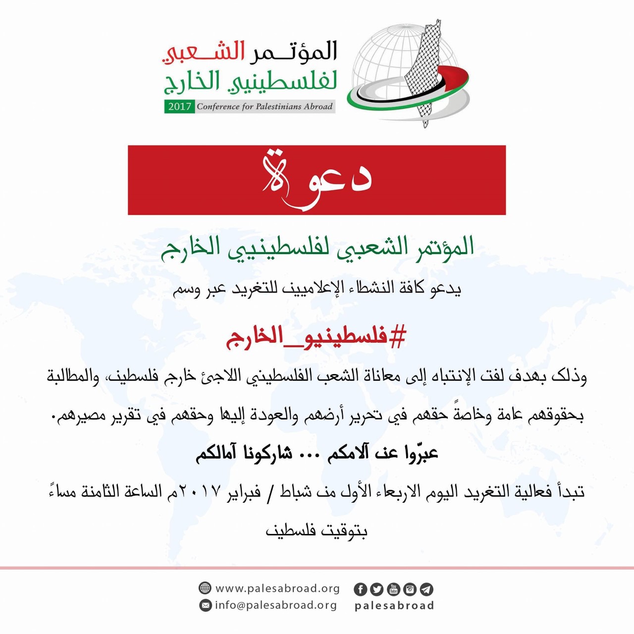 وحسب البيان ستبدأ فعالية التغريد عند الساعة الثامنة مساء اليوم بتوقيت فلسطين.