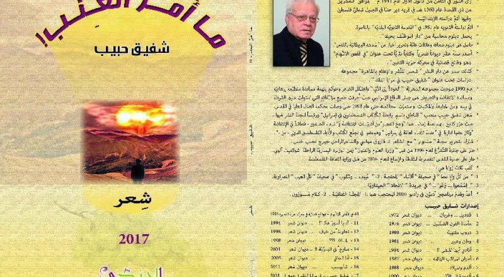 وشملت الكتب "زفرات في الحرب والحب" للشاعر الأسير هيثم جابر، يقع الديوان في 224 صفحة من القطع المتوسط، وكتاب "ما أمر العنب " للشاعر شفيق حبيب، يقع الديوان في 202 صفحة من القطع المتوسط.