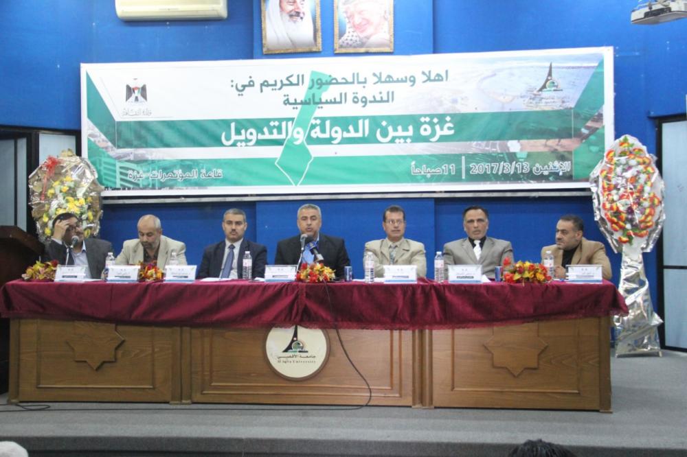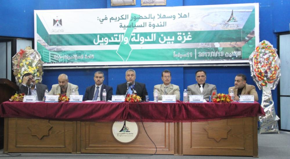 عقدت الإدارة العامة للتنمية الثقافية بوزارة الثقافة، وبالتعاون مع قسم التاريخ بجامعة الأقصى، لقاءاً فكرياً بعنوان: "غزة بين الدولة والتدويل"، بحضور لفيف من المحللين السياسيين، والمثقفين، والشخصيات الاعتبارية، وطلاب الجامعات.