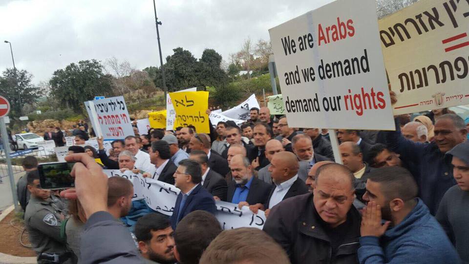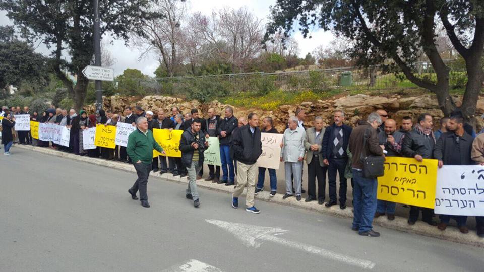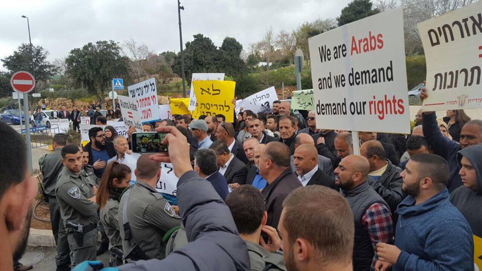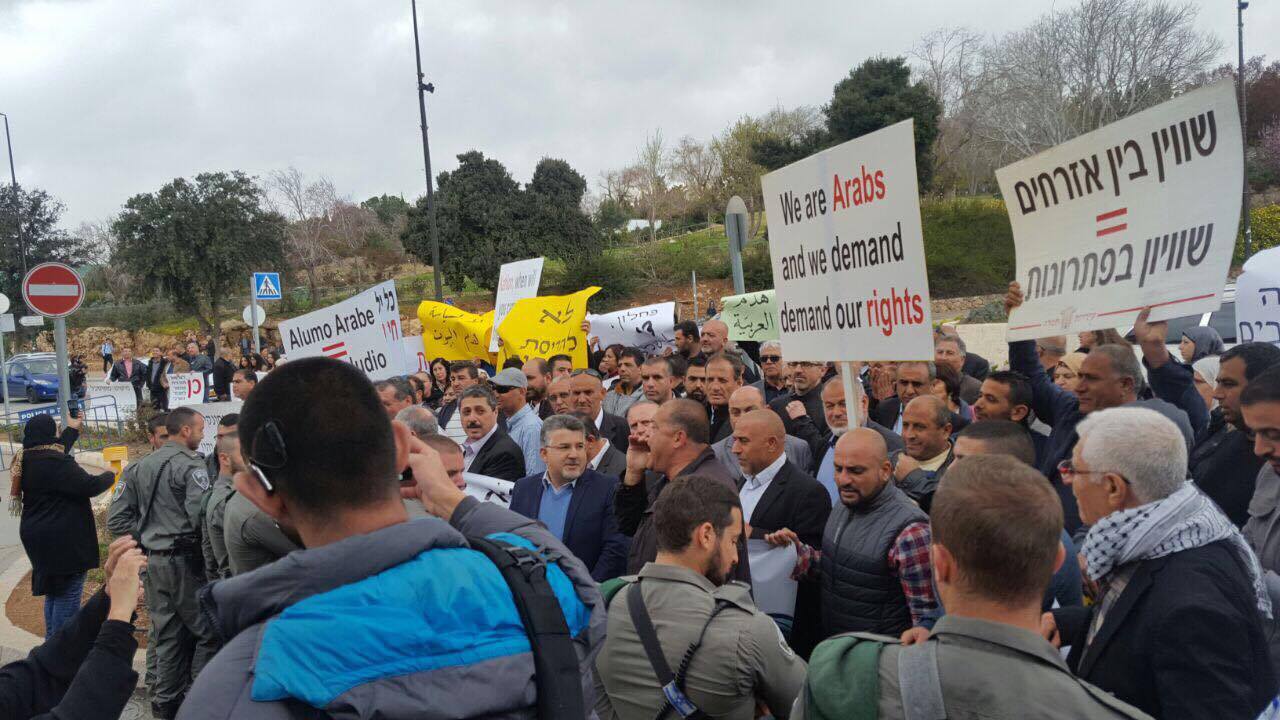 احتشد المئات من النشطاء والمواطنين من أبناء الداخل الفلسطيني المحتل صباح الثلاثاء أمام مقر وزارة المالية بحكومة الاحتلال الاسرائيلي بالقدس المحتلة، احتجاجًا على سياسة هدم المنازل وبالتزامن مع جلسة للتصويت على تعديل قانون لتسريع عمليات الهدم بالداخل.