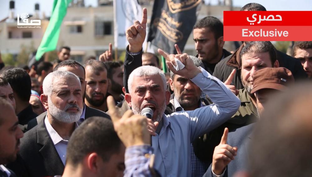أظهرت لقطات فيديو هتافات رددها قائد حركة المقاومة الإسلامية (حماس) الجديد في قطاع غزة يحيى السنوار أثناء مراسم دفن الشهيد القائد القسامي مازن فقها.