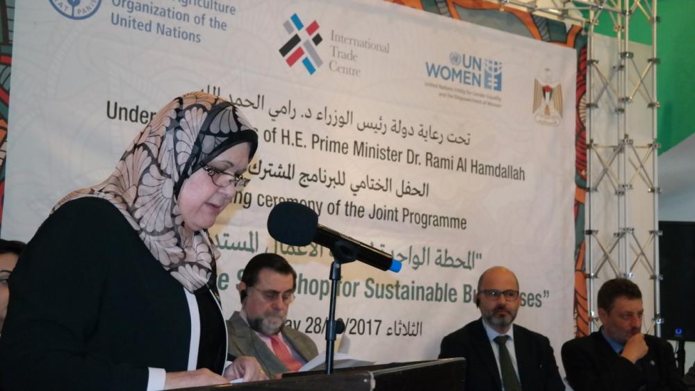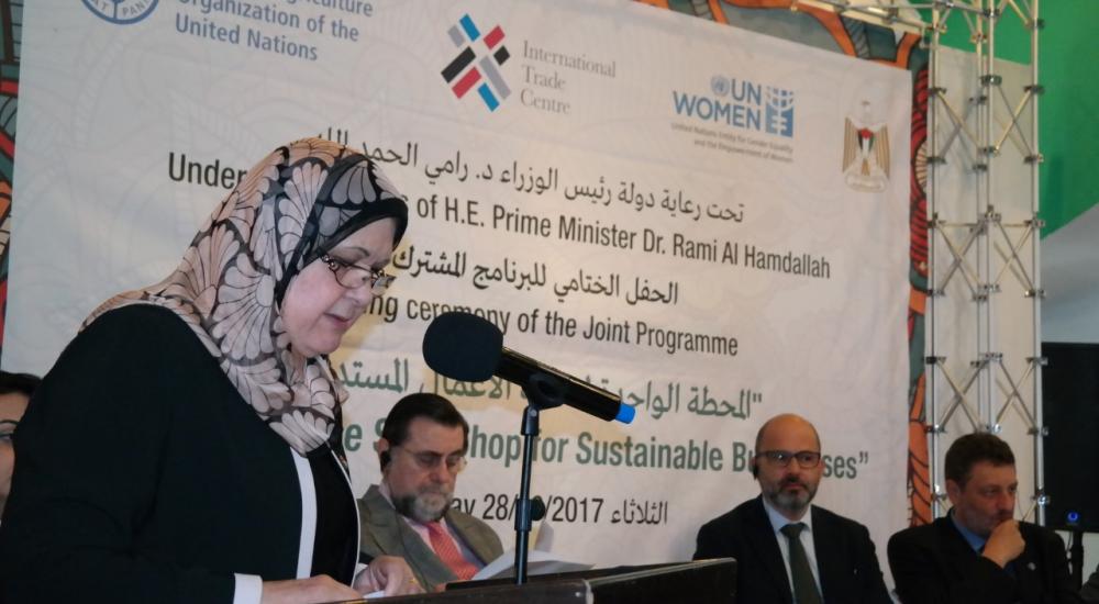 اختتمت وزيرة شؤون المرأة هيفاء الأغا الثلاثاء برنامج "المحطة الواحدة للأعمال المستدامة" في مركز السكاكيني الثقافي برام الله.
