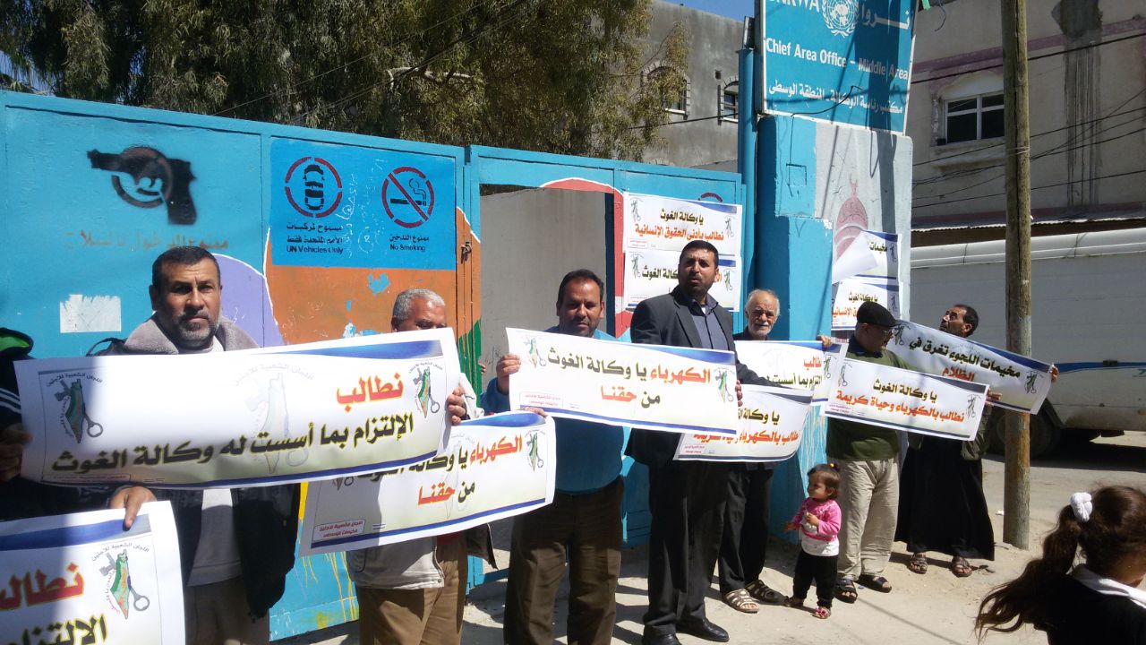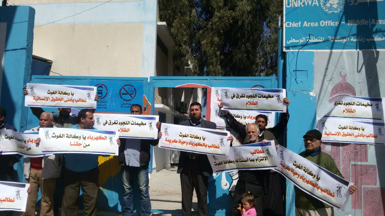اعتصم عدد من اللاجئين الفلسطينيين الثلاثاء أمام مقار وكالة غوث وتشغيل اللاجئين الفلسطينيين "الأونروا" في كل من مخيم جباليا للاجئين شمال غزة، وفي المنطقة الوسطى، للمطالبة بإيجاد حل لأزمة كهرباء غزة.