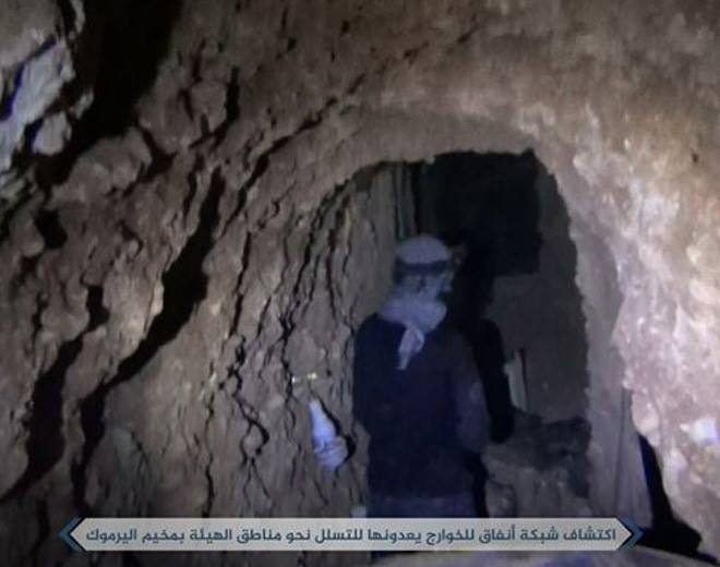 أثارت صور مسربة من قبل "وكالة إباء" التابعة لهيئة تحرير الشام يوم 24 أبريل الجاري لشبكة الأنفاق تحت الأرض التي قالت إن تنظيم "داعش" كان قد حفرها تجاه أماكن سيطرة الهيئة في مخيم اليرموك، مخاوف وهواجس أهالي مخيم اليرموك سواء منهم النازحين عنهم أو المحاصرين فيه.