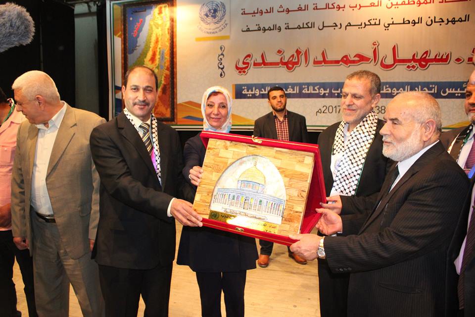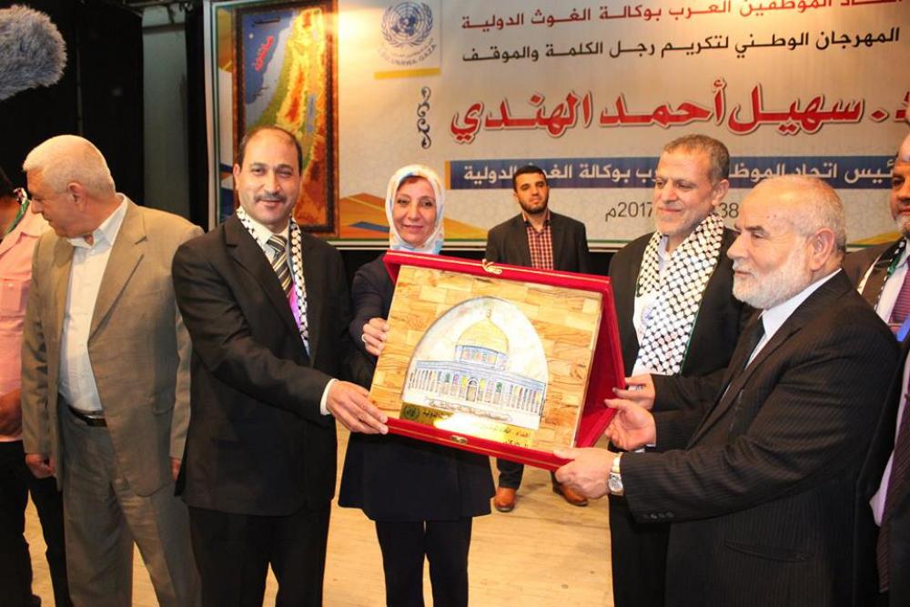كرّم اتحاد الموظفين في "أونروا" السبت رئيس الاتحاد السابق سهيل الهندي بحضور رئيس المجلس التشريعي بالإنابة أحمد بحر وممثلين عن فصائل العمل الوطني والإسلامي.