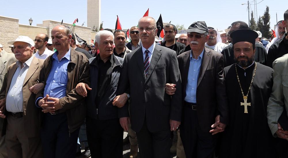 وقال الحمد الله خلال مشاركته في إحياء فعاليات الذكرى التاسعة والستين للنكبة، الاثنين برام الله "نستذكر اليوم 7 آلاف أسير في سجون الاحتلال، نستذكرهم وهم يخوضون الإضراب عن الطعام، معركة الحرية والكرامة".