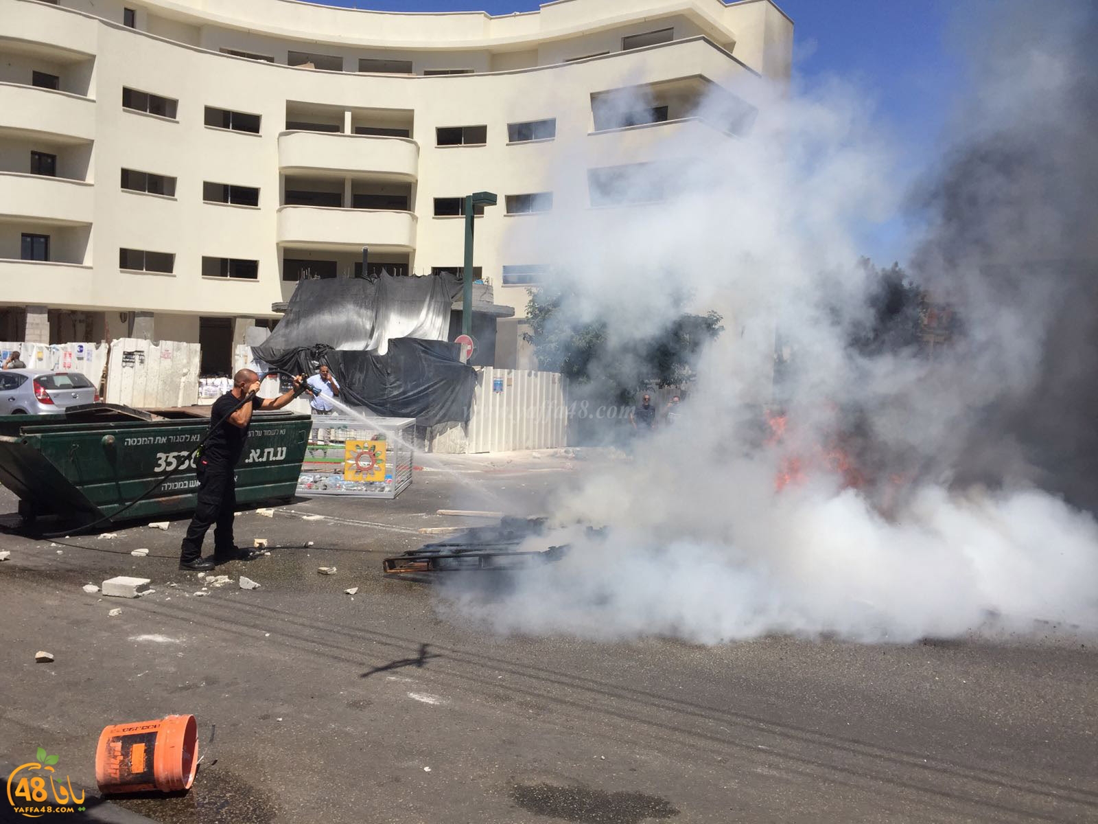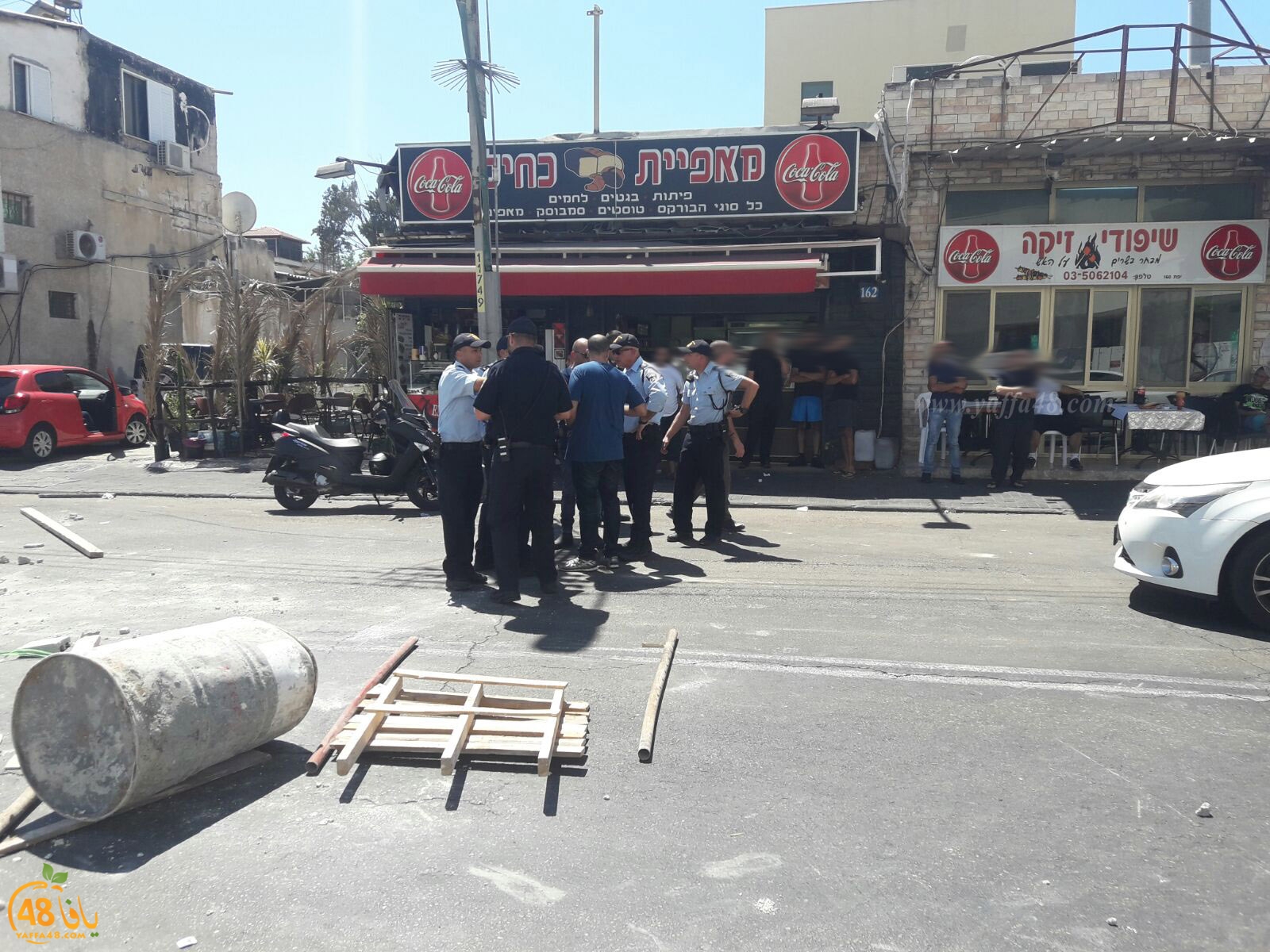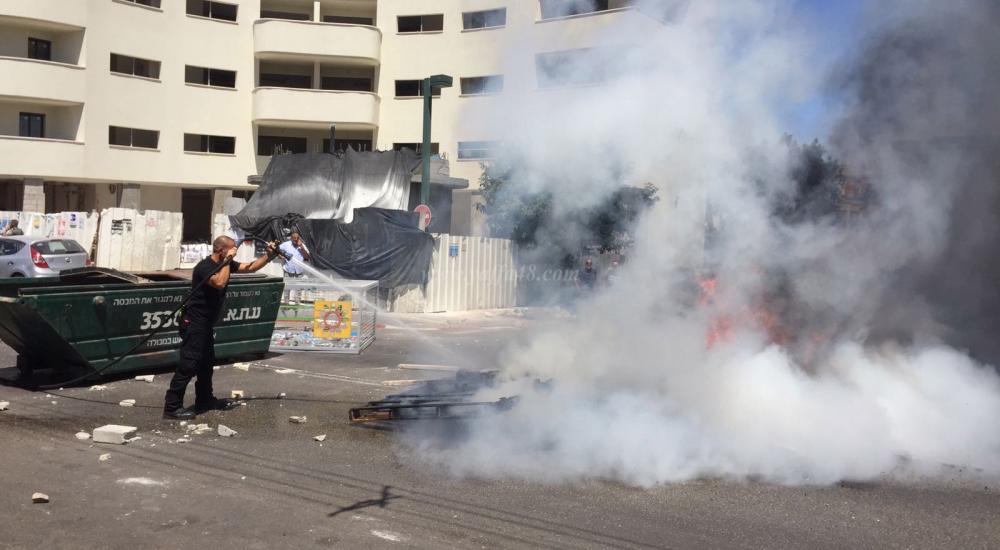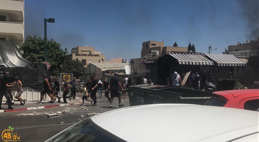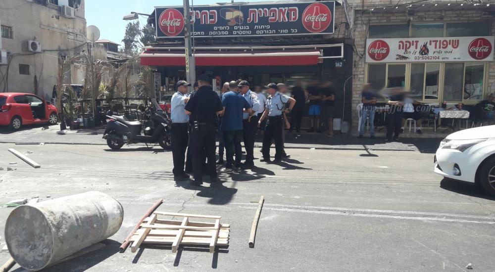 ورشق عشرات الشبان عناصر شرطة الاحتلال بالحجارة والزجاجات الفارغة ردًا على قتل الشاب الفلسطيني بدم بارد.